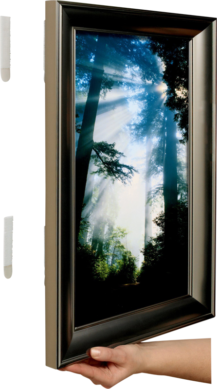 A rögzítőszalagok tépőzárat használnak a keret és a fal között, hogy a felakasztás minél egyszerűbb és kíméletesebb legyen. A szerelési útmutatót az alábbi videóban találja.