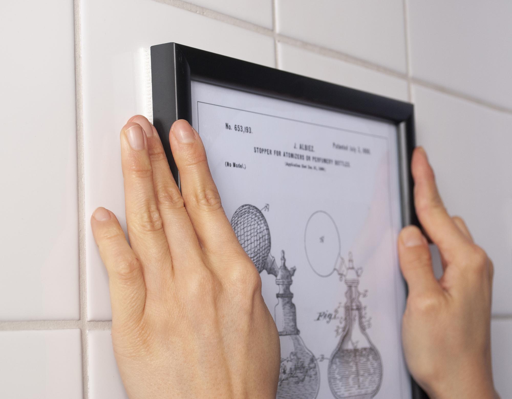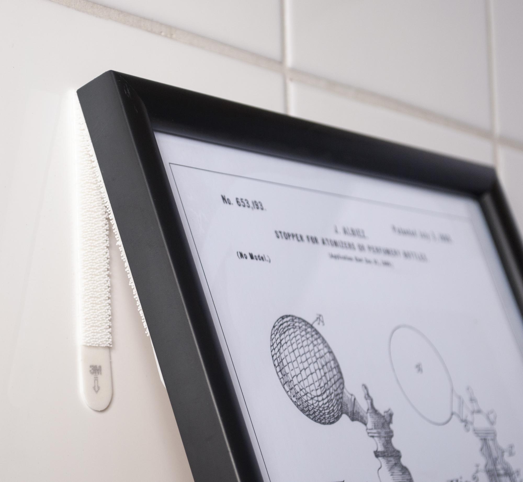 A felfüggesztő csíkok a keret és a fal között tépőzárat használnak, hogy a felfüggesztés a lehető legegyszerűbb és kímélőbb legyen. A felszereléshez tekintse meg az alábbi útmutató videót.