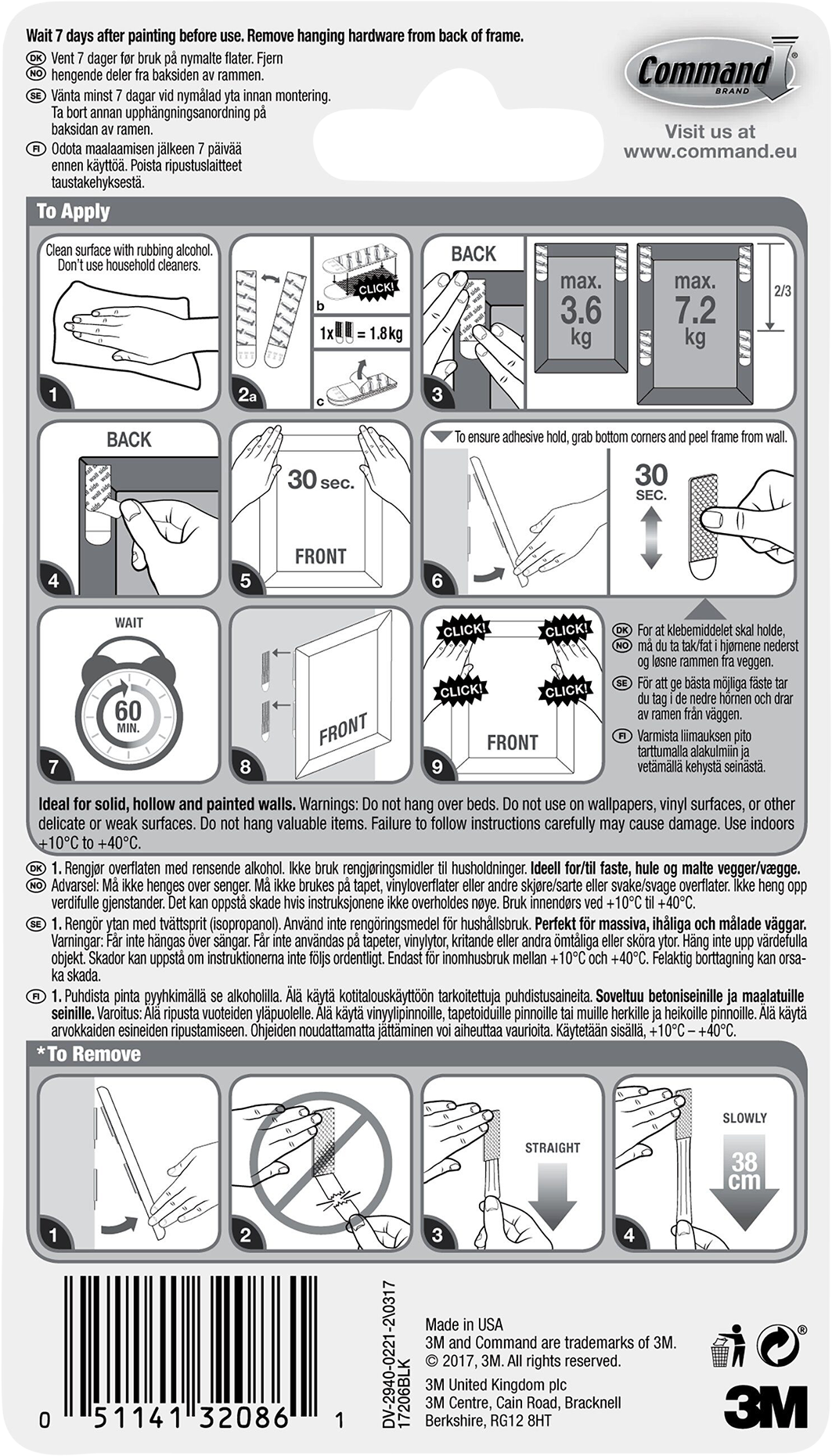Ezekkel a Command képkeretlógatókkal egyszerűen felszerelheti a fényképtartó kereteket anélkül, hogy lyukakat kellene fúrnia vagy szöget kalapálnia a falba. A függesztők öntapadósak és nem hagynak nyomot eltávolításkor, köszönhetően a 3M innovatív stretch-eltávolító technológiájának. Tökéletesen alkalmasak a legtöbb sima felületen történő használatra, mint például festett falak, csempe, fém és fa. A rögzítőszalagokat nem szabad tapétára, vinil anyagokra vagy más érzékeny felületekre használni.