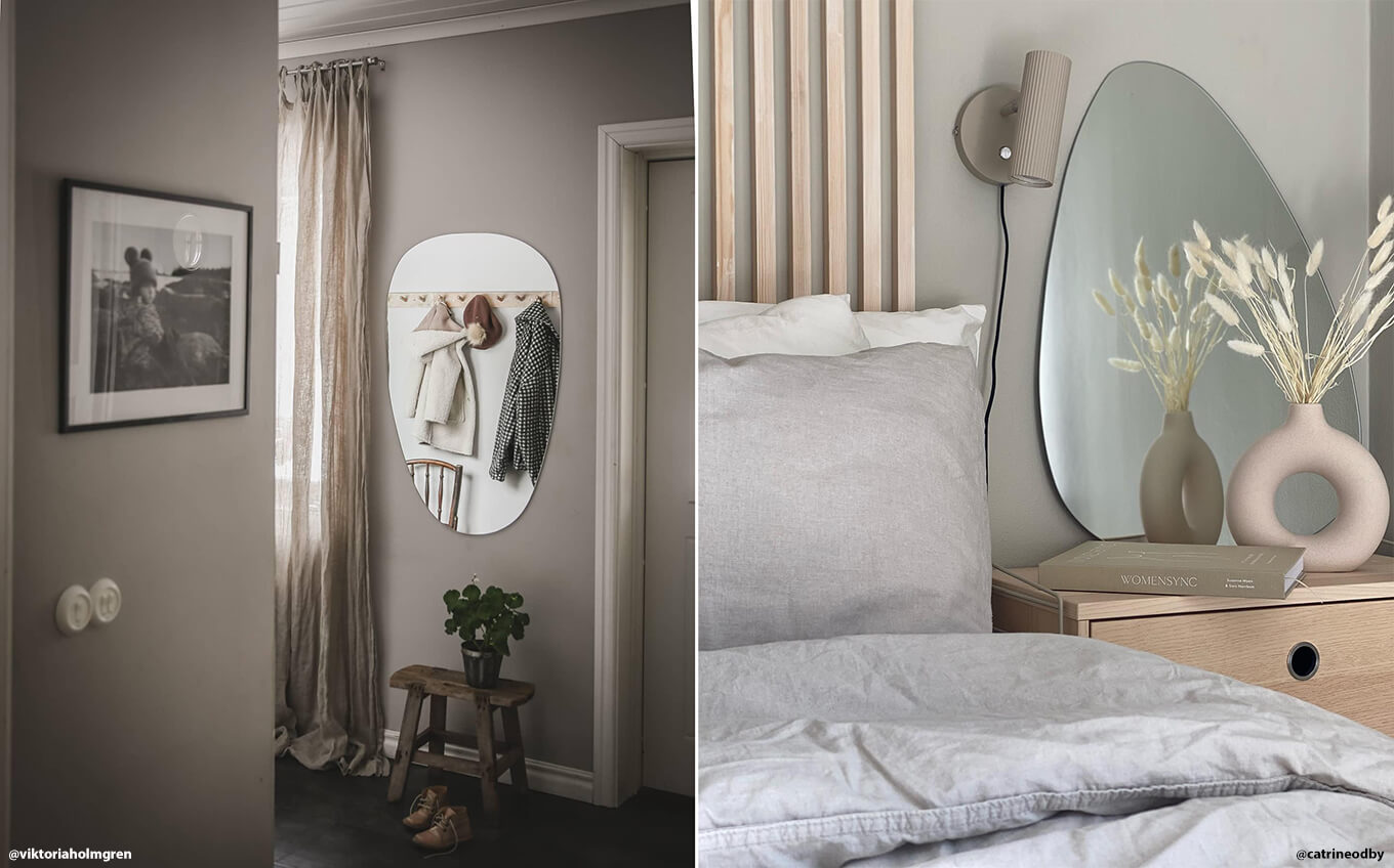 A tükör a hallban szinte elengedhetetlen egy otthonban. Nemcsak azért, hogy egy utolsó pillantást vethess a tükörbe, mielőtt elindulsz otthonról, hanem azért is, hogy stílusos belépőt hozz létre, amely az első dolog, amivel te és a vendégeid találkoztok. Az aszimmetrikus tükör elhelyezése a hallban azonnal trendi benyomást kelt. Ez az ovális tükör funkciót és szép svéd dizájnt ad a térhez.