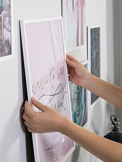 A keretek kiválasztása segít meghatározni a képfal hangulatát. Gyakori, hogy egy vagy két színű keretet választanak, hogy a fal összes festménye természetes módon összefonódjon. Ha drámaibb hatást keresel, akkor akár az ellenkezőjét is választhatod, és különböző színek, formák és kivitelek képkockáit mixelheted és párosíthatod.