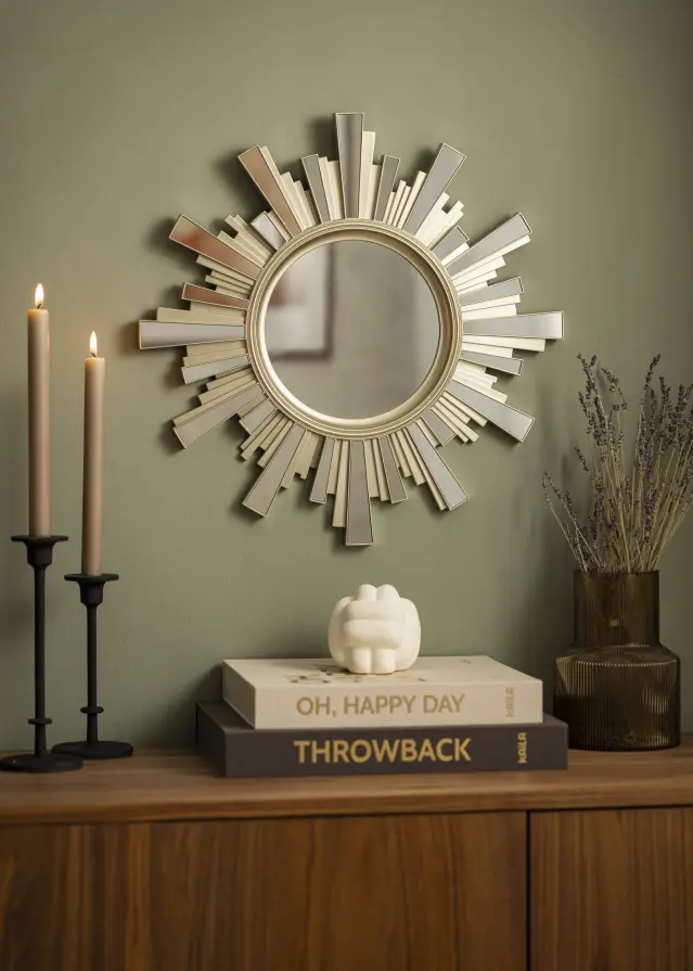Az aranytükrök szupermutatósak lesznek a fekete, fehér és különböző pasztellszínű dekorációs elemekkel. A tökéletes összhatás érdekében kiegészíthető hasonló aranyszínű gyertyatartókkal vagy más dísztárgyakkal.