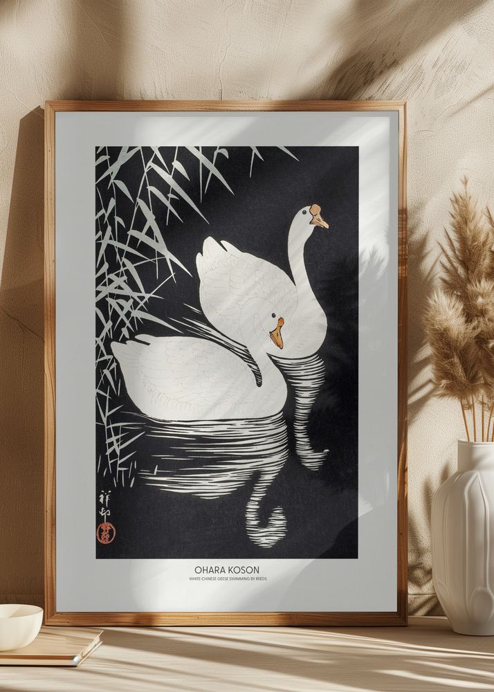 https://www.bgastore.hu/White-Chinese-Geese-Swimming-by-Reeds-Poszter-60x90-cm