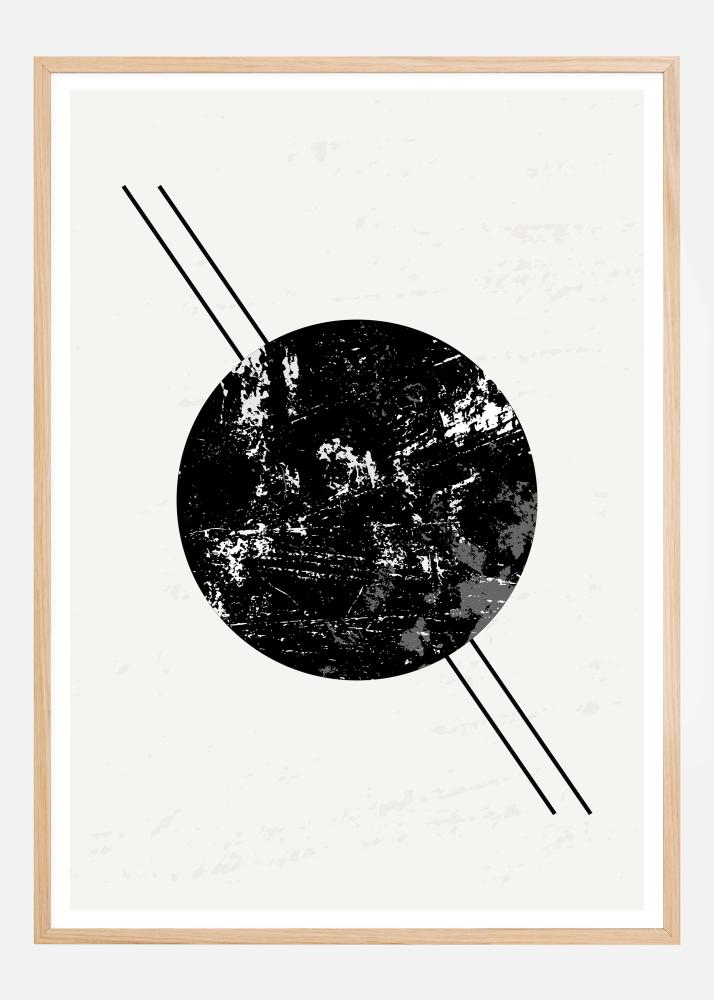 Egy erőteljes absztrakt poszter, amelyen egy fekete kör látható, két vonallal, amelyek a bal felső saroktól a jobb alsó sarokig futnak. A fekete kör fehér és szürke márványhatású, ahol a két fekete vonal majdnem a Szaturnusz gyűrűit képezi. Hozza haza ezt és fedezze fel az összes lehetőséget ebben az elgondolkodtató műalkotásban.