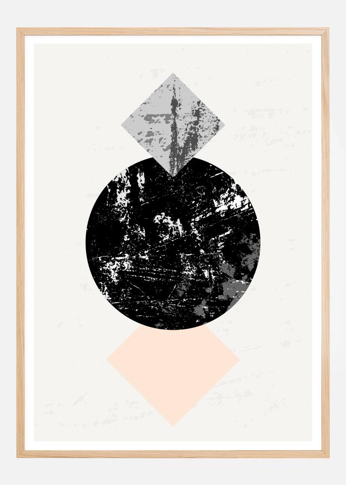 Egy geometrikus absztrakt poszter két négyzettel, amelyek egy kört vesznek körül. A fekete kör fehér márványos, és egy kék márványos négyzet, valamint egy rózsaszín négyzet szegélyezi. Minden egyes helyzet egy ponton található, ami a szemet a középen lévő földformájú körre fókuszálja. Vigyen drámaiságot egy egyszerű falra ezzel a figyelemfelkeltő műalkotással.