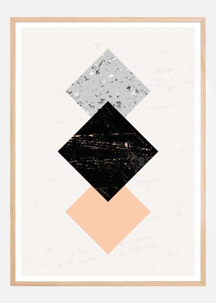 Egy geometrikus poszter három különböző színű négyzettel. Egy lágyabb kép, ahol a fókusz a fekete négyzeten van, de ezt a hatást tovább lágyítja egy sötétkék négyzet felül és egy rózsaszín négyzet alul, ahol mindkettő további mintákkal rendelkezik. Adj egy kis drámai hatást, anélkül hogy túlzott lenne, amikor ezt a posztert az előszobában vagy bármelyik természetes fénnyel rendelkező szobában felakasztod.
