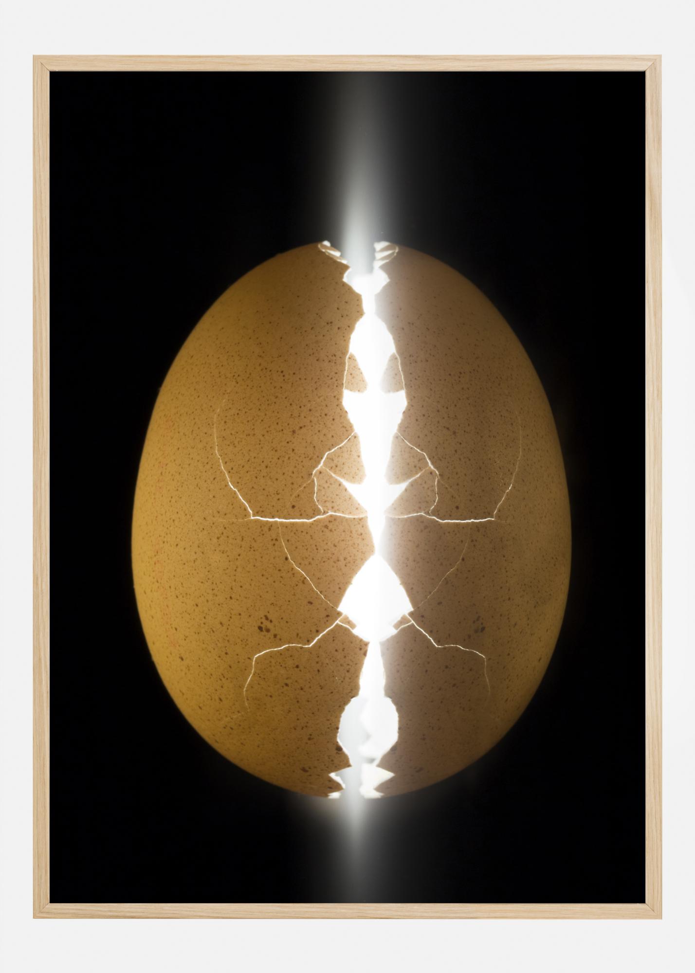 Egy drámai absztrakt poszter egy tojással, amely éppen kikel, erős fény sugarai áradnak ki belőle, mindez fekete háttér előtt. A fény csodálatos szimmetrikus mintázatban tör át. A fénysugarak legyőzik a sötétséget egy absztrakt, de mégis meggyőző képen, amely tökéletes bármelyik faladra.