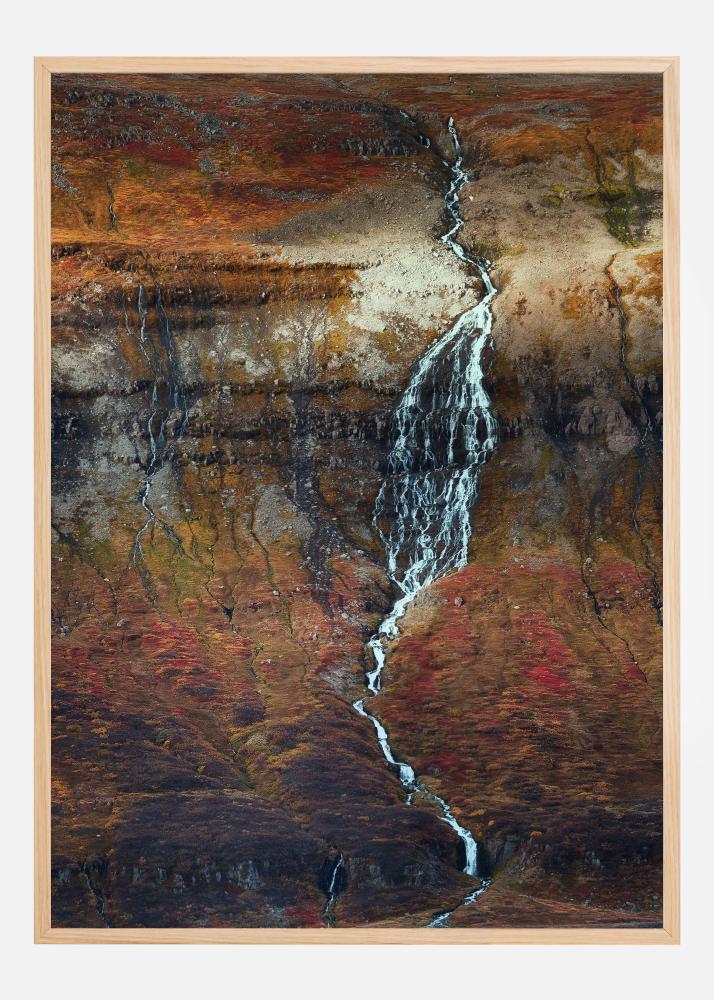 Egy fantasztikus természetposzter egy kis vízeséssel, amely mohaszínű kövek fölött folyik. Sárga, piros és narancssárga színek töltik meg a képet meleg árnyalatokkal, miközben a fényes fehér patak kaszkádokban zúdul a sziklák közé. Kövesse a víz mozgását ezen a lenyűgöző poszteren, amikor kiállítja otthon.