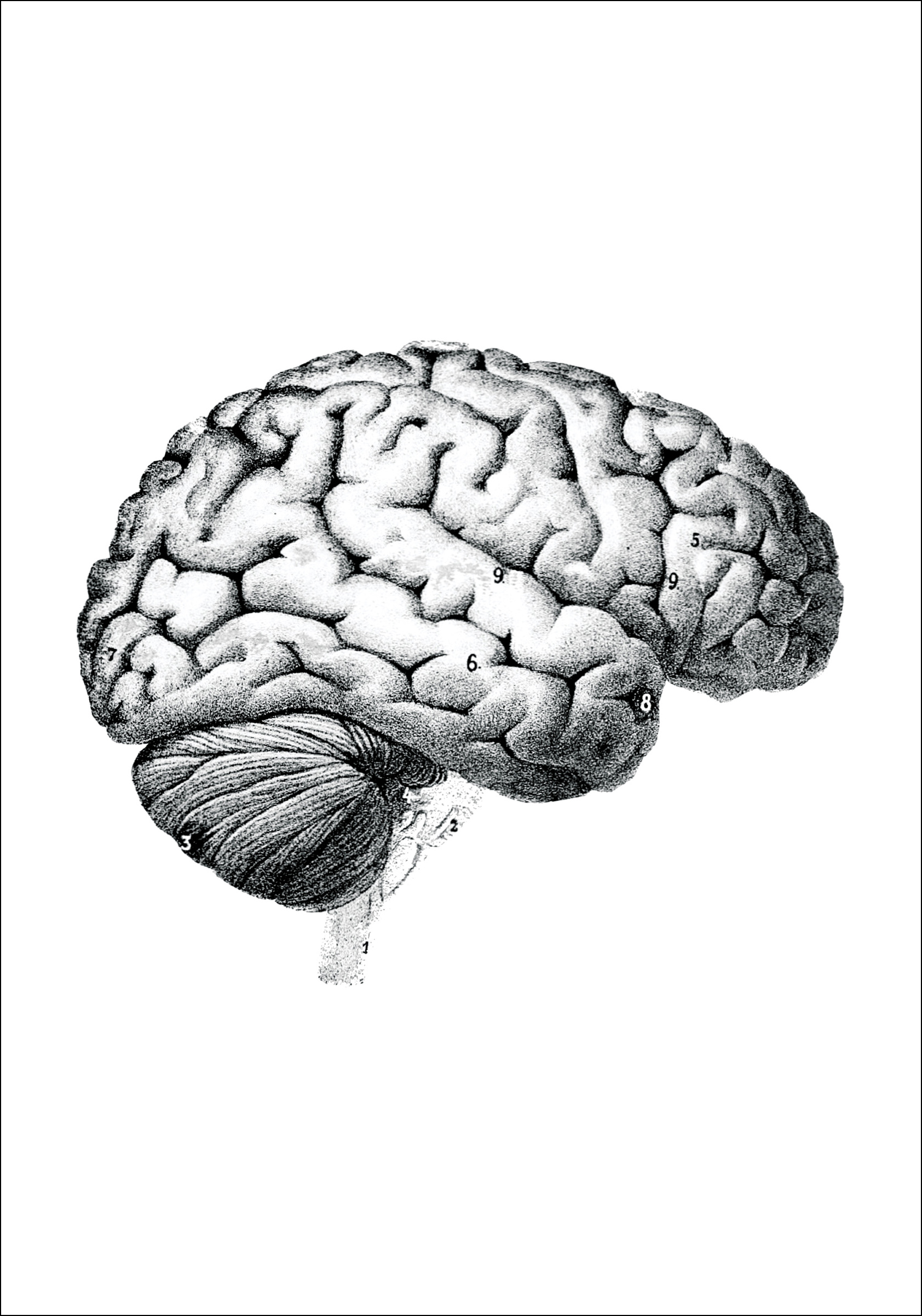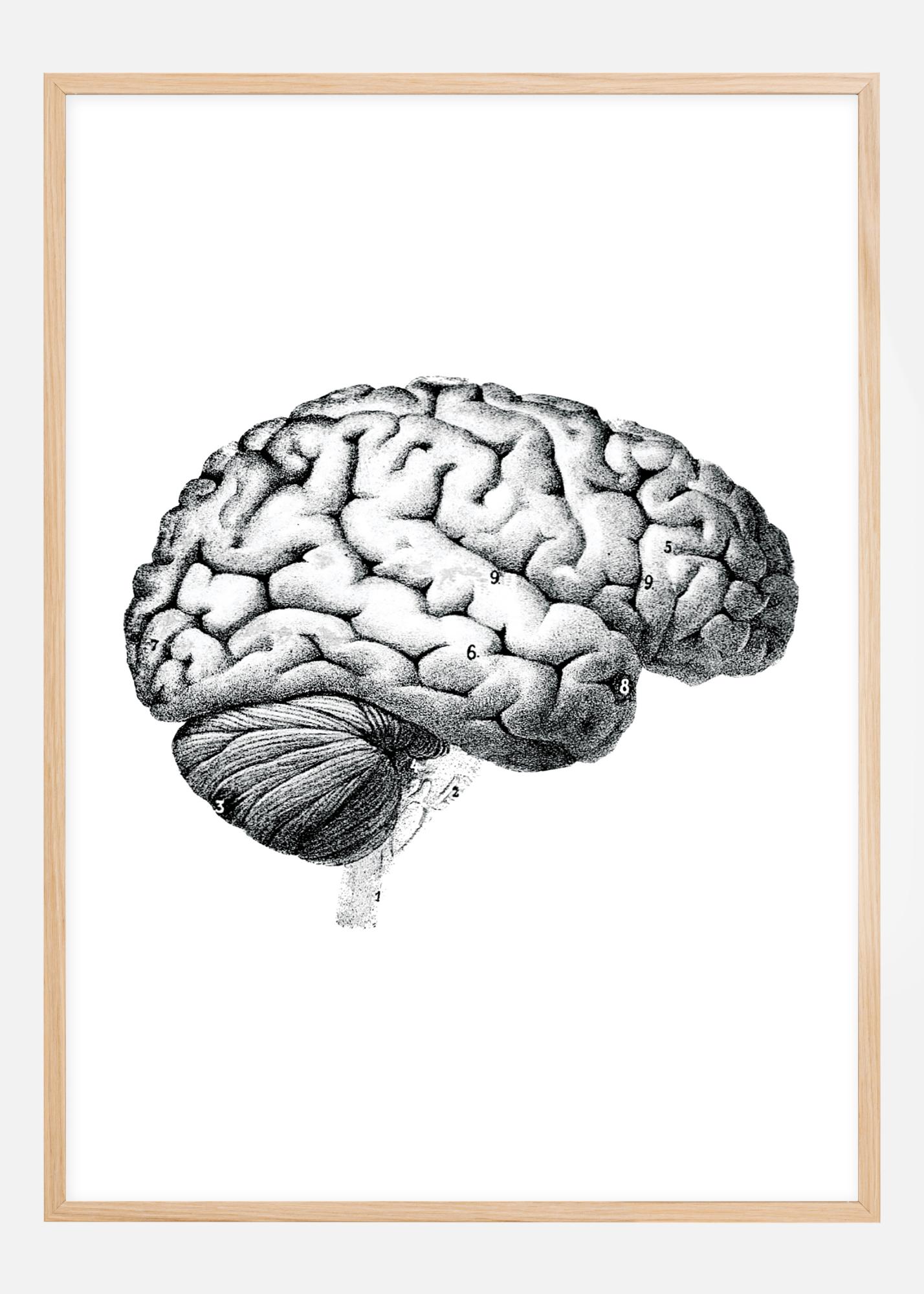 Tedd izgalmasabbá a belső teredet különböző iskolai poszterekkel, amelyek vintage érzést keltenek! Ez a poszter egy régi rajz másolata, amely egy agyat ábrázol a különböző részeinél számokkal. A rajz egy anatómiai tankönyvből származik. Mivel fekete-fehér, könnyen párosítható egy kerettel, amely jól illeszkedik a többi berendezéssel. A poszter különböző méretekben kapható, így könnyen megtalálhatod azt, amelyik éppen a te otthonodba illik.