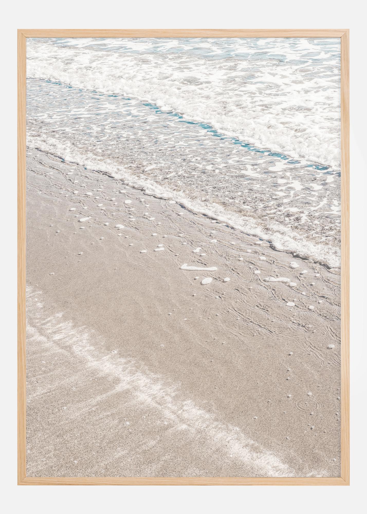 Ez a megnyugtató poszter a part természetes szépségét ábrázolja, ahol a tenger találkozik a szárazfölddel. A finom homok, amelyet a tenger lágy hullámai formáltak, egyszerű és összetett textúrát hoz létre. A homok nyugodt színei harmonikusan keverednek a tenger fehér habjával és az áttetsző türkiz vonallal, ahol a hullám megtörik, ami békét és tisztaságot sugároz.