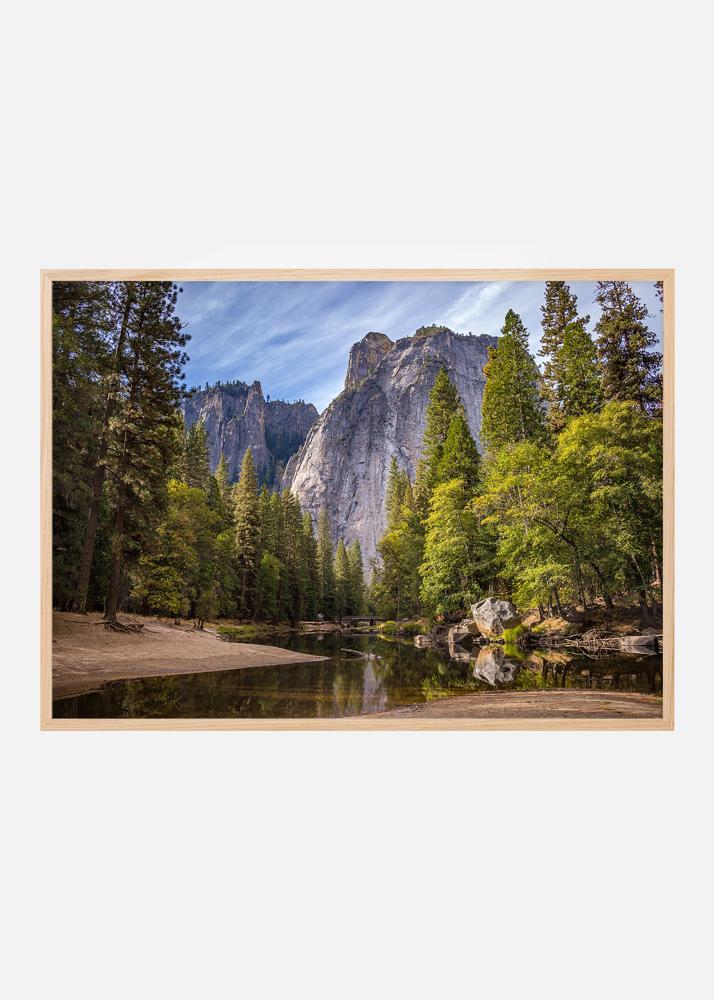 Nyomtatás magas sziklákkal és egy csendes erdővel, amely egy békés vízfelületen tükröződik. Egy beszédes csend, amely nyugodt tájat teremt. Természetes anyagból készült kerettel mindenféle berendezéshez és színsémához illik a kép. Függeszd fel a fotót más természetképekkel együtt, vagy válassz nagyobb méretet, hogy önálló képként is hatást gyakoroljon.