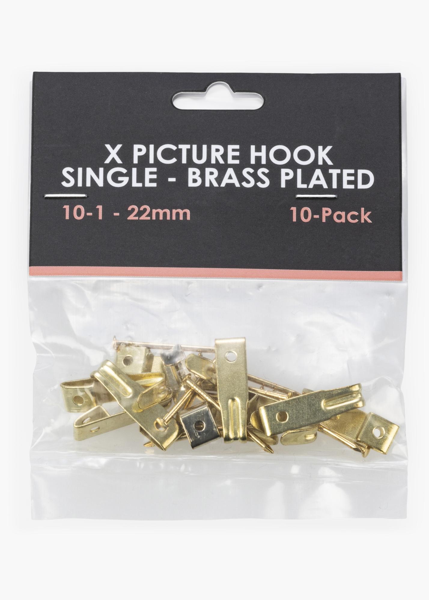 X-kampó fa- vagy gipszfalra történő felszereléshez. Terhelést bír el 5 kg-ig. Sárgaréz színű.