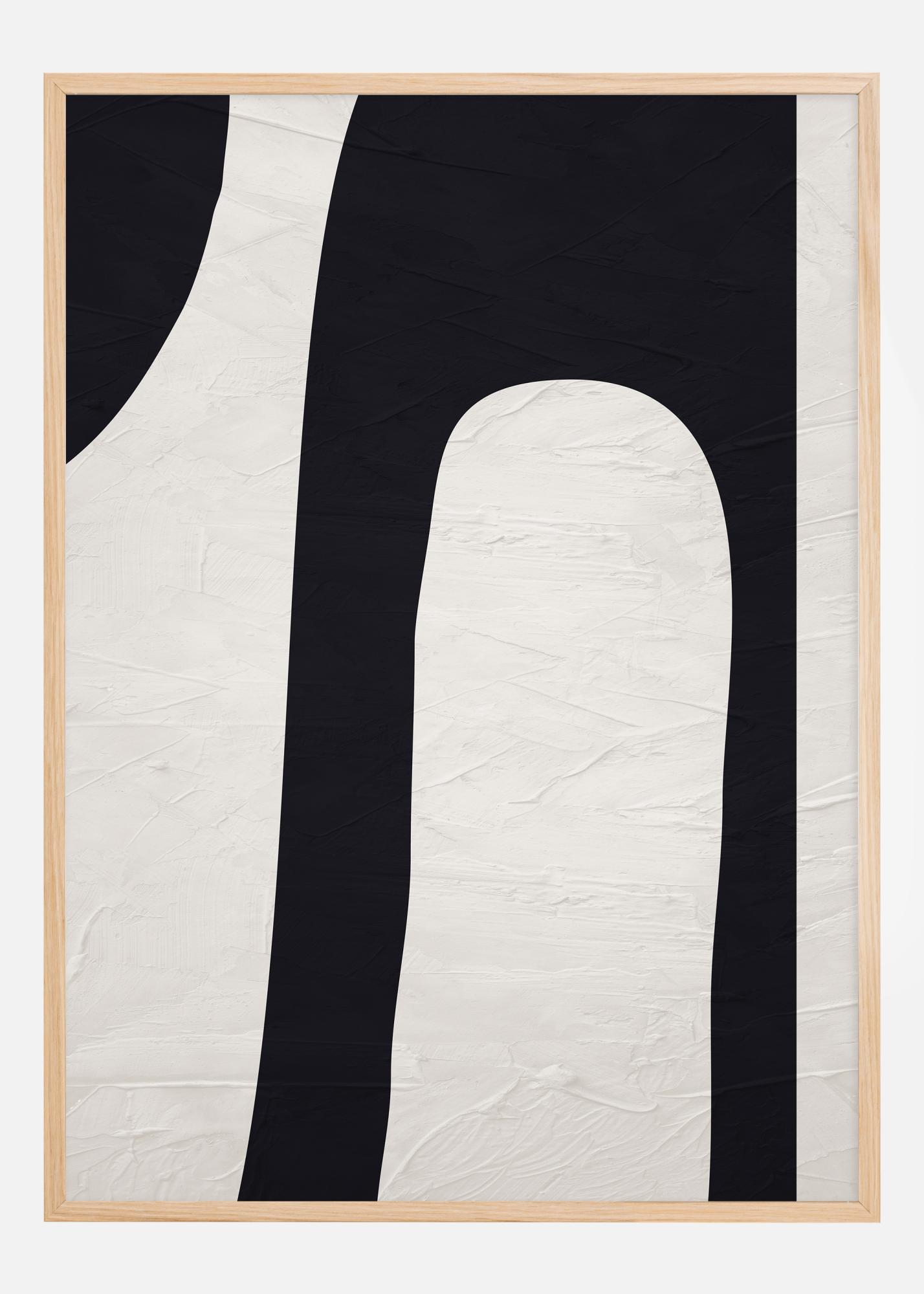 Ez a művészi poszter absztrakt fekete vonalak játékát mutatja be krémfehér háttéren, amely erős és vizuálisan ösztönző kontrasztot teremt. A dizájn a térrel és perspektívával játszik azzal, hogy a fekete vonalak formáját használja dimenzió és mélység sugallására. Ez egy minimalista, de erőteljes kép, amely egyensúlyoz a modern művészet és a grafikai tervezés között.