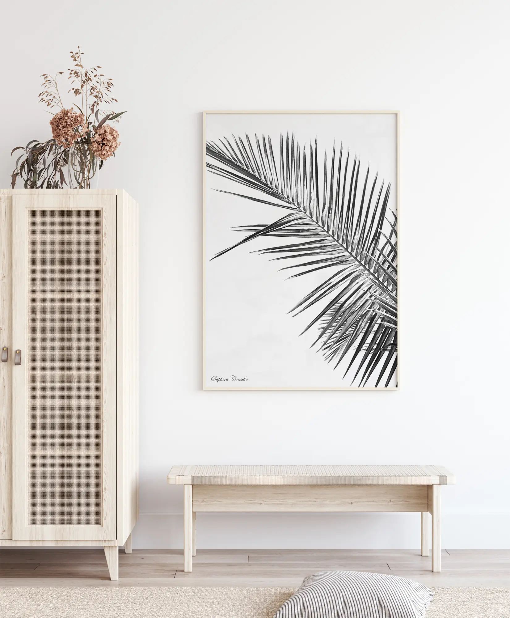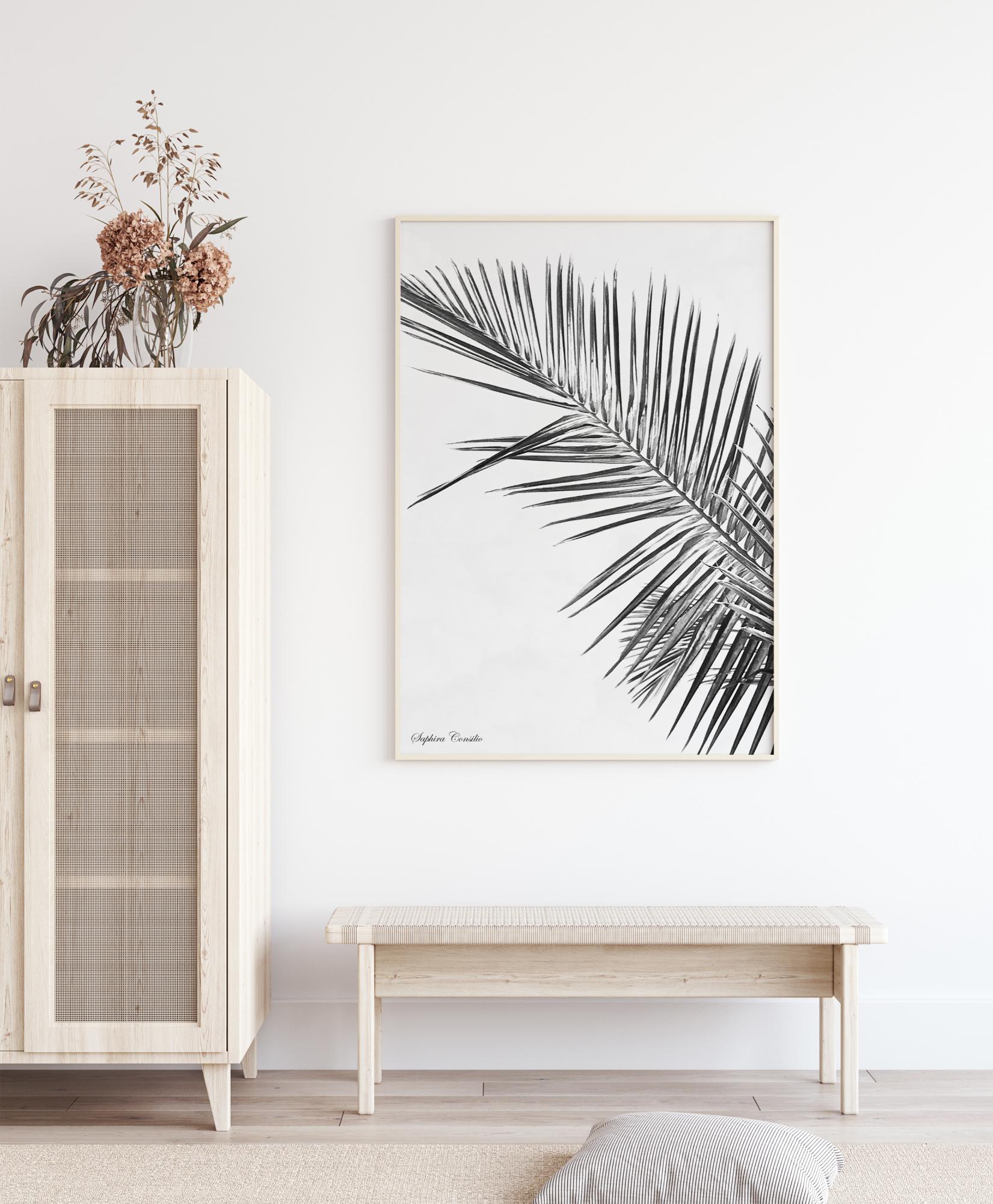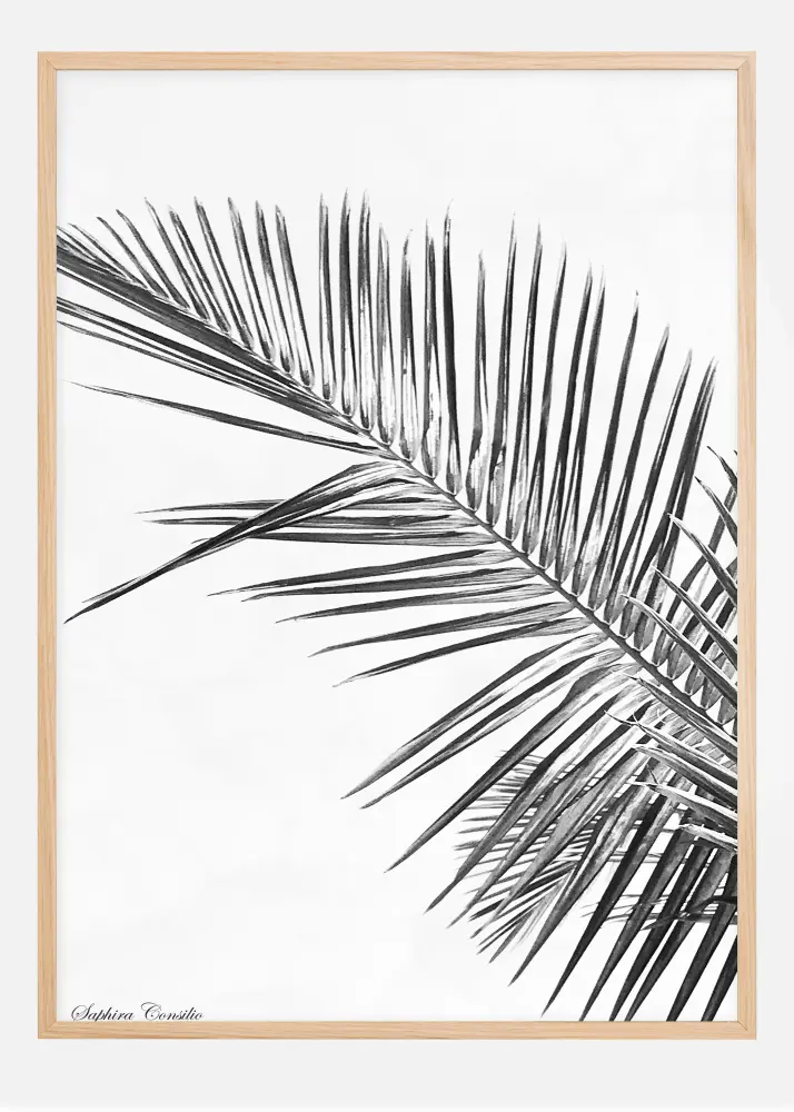 Egy fénykép világos szürkeárnyalatban egy pálmaágáról, amit Saphira Consilio fotográfus készített. Egy kellemesen minimalista poszter, ami tökéletesen illeszkedik például a modern vagy a retro ihletésű otthonba. Párosítsa szívesen valami mással Saphira Consilio kínálatunkból egy nagyobb kép falhoz.