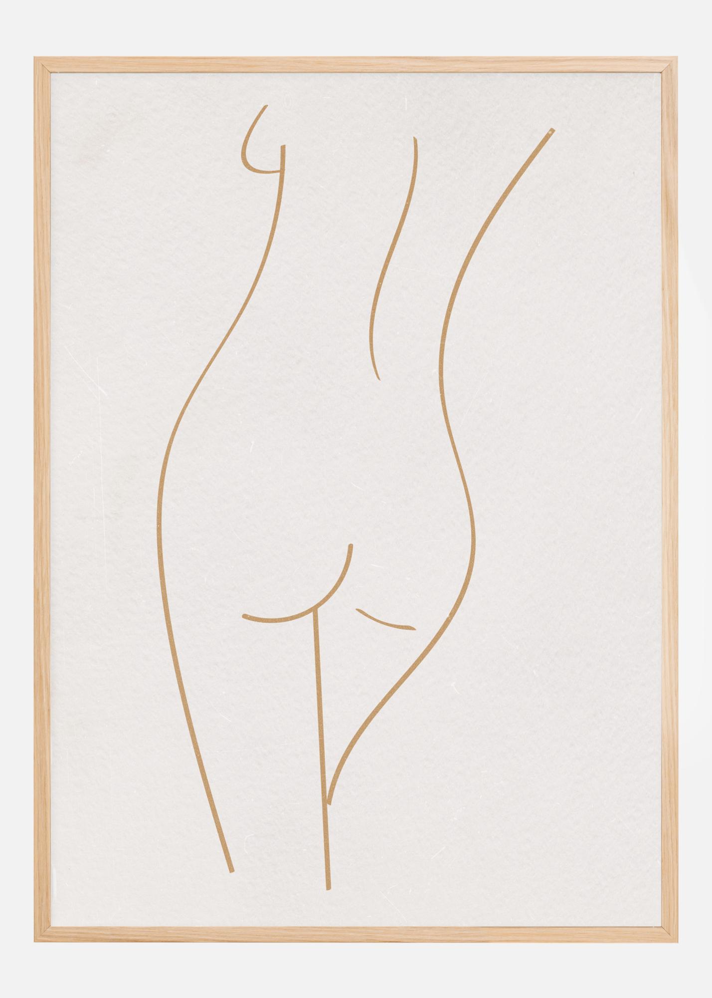 Egyszerű rajzolt poszter egy háttal álló nőről. Vékony barna vonalak elegendőek ahhoz, hogy megalkossák ennek a hátulról pozicionált nőnek a formáját. A vonalak felfelé vezetik a tekintetet a háton, ebben az egyszerű, de elegáns rajzban, fehér háttéren.