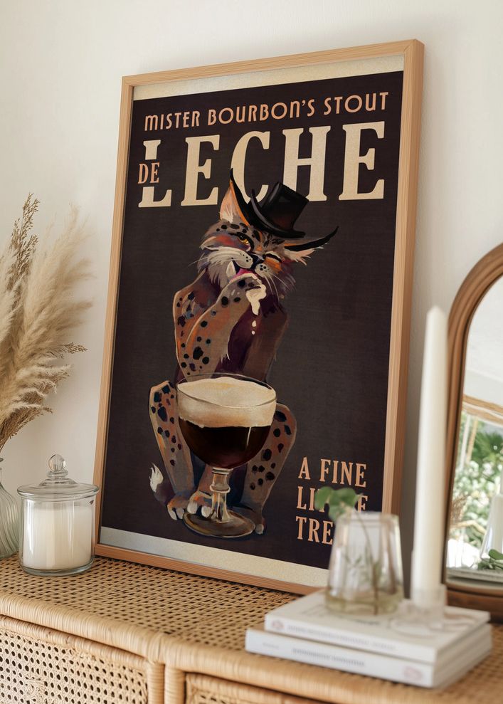 Bourbon De Leche Guinness Style Cat Art Poszter