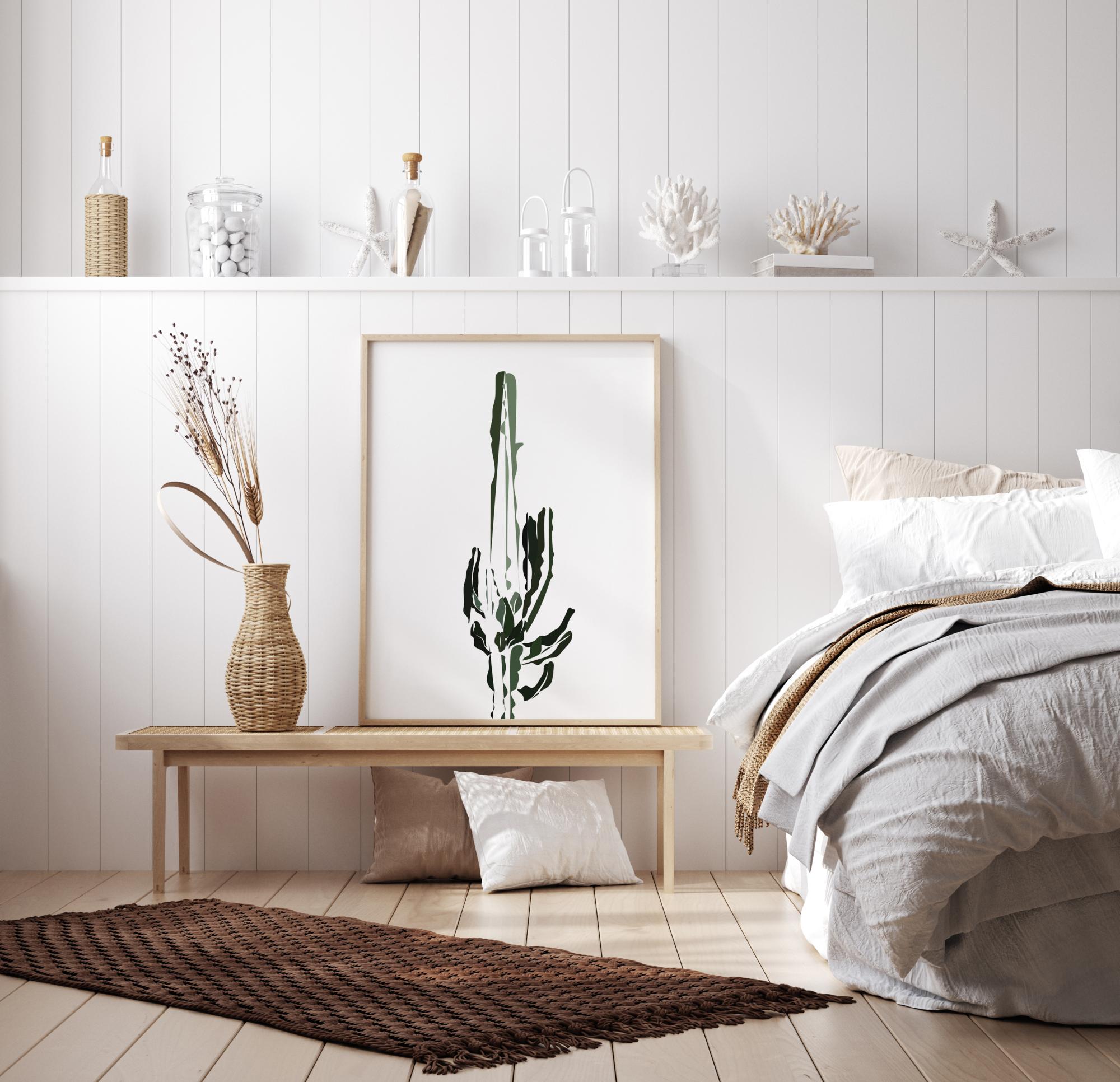 Egy kaktusz grafikus művészeti posztere különböző zöld árnyalatokban, Linn Westanbäck művész alkotása. Csodálatosan minimalista, és tökéletesen kombinálható Linn más műveivel!
