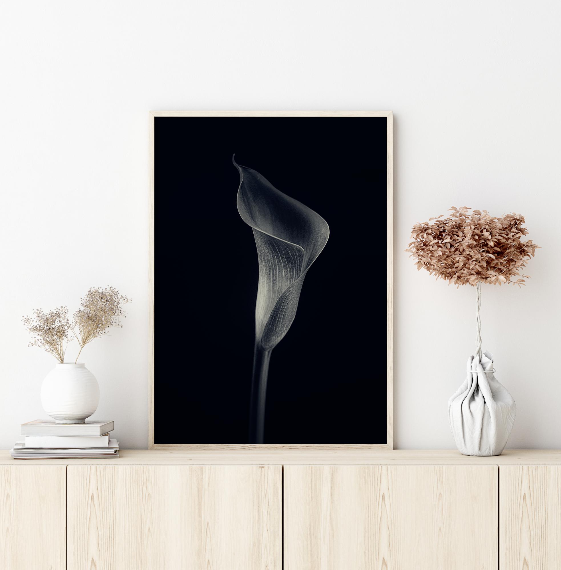 Egy poszter egy magányos liliommal, amely éteri ragyogást kelt. Ennek a liliomnak egy fordított negatívja misztikát ad a virágnak a fekete háttér előtt. Ez a szokatlan fotó biztos beszédtéma lesz, amikor egy fehér falon lóg a drámai hatás fokozása érdekében.