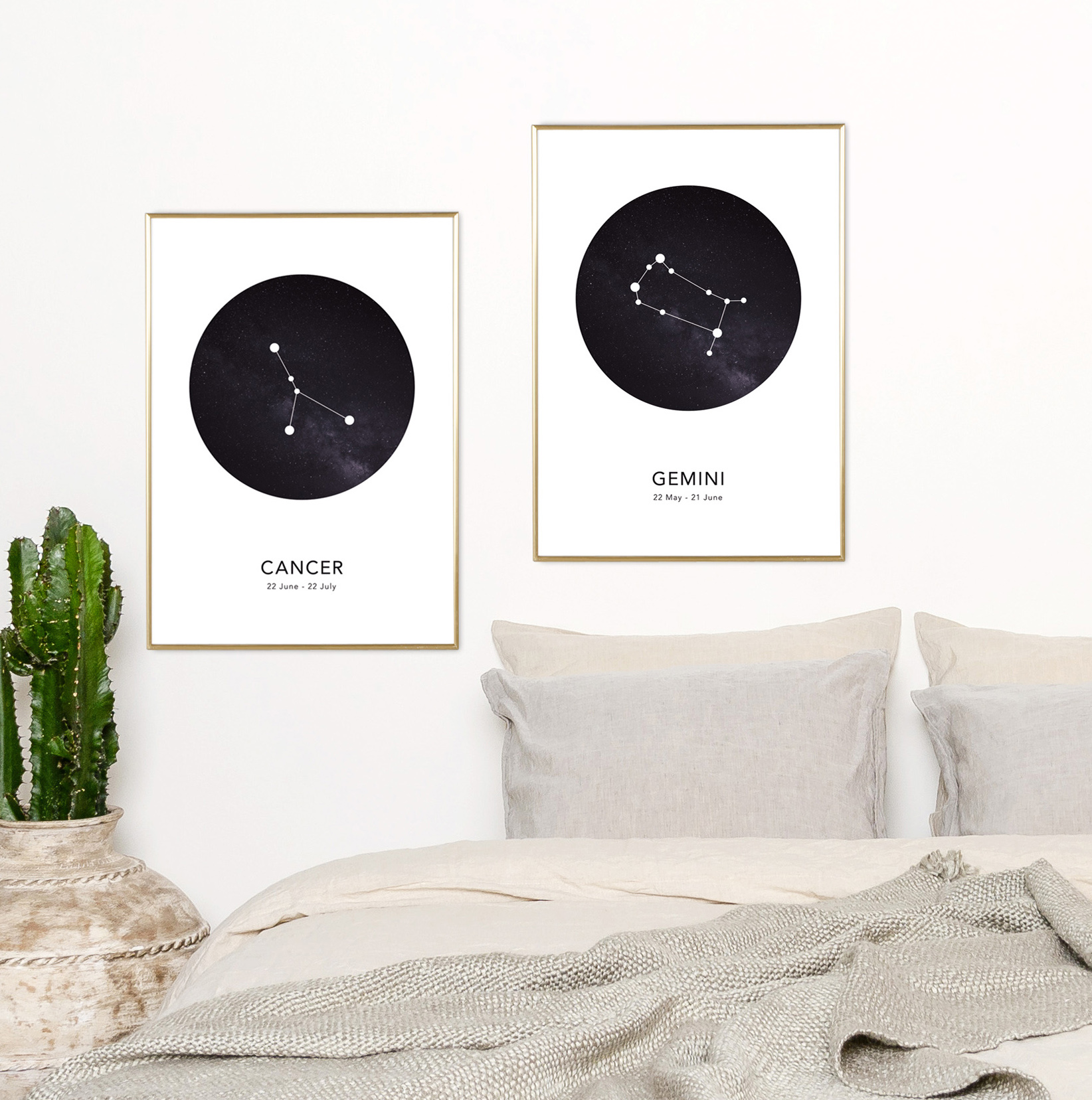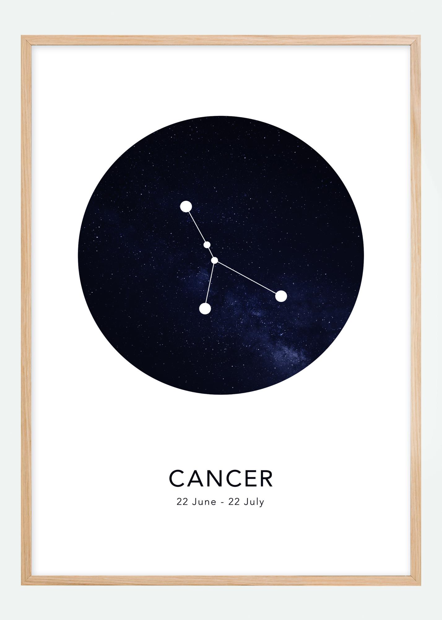 Ajándékozz meg valakit egy személyre szabott képpel, akit kedvelsz! Ez a stílusos plakát a Rák csillagjegyet ábrázolja fekete és kék csillagos ég háttérrel. Alatta angol nyelven szerepel a név és az érvényes dátum.