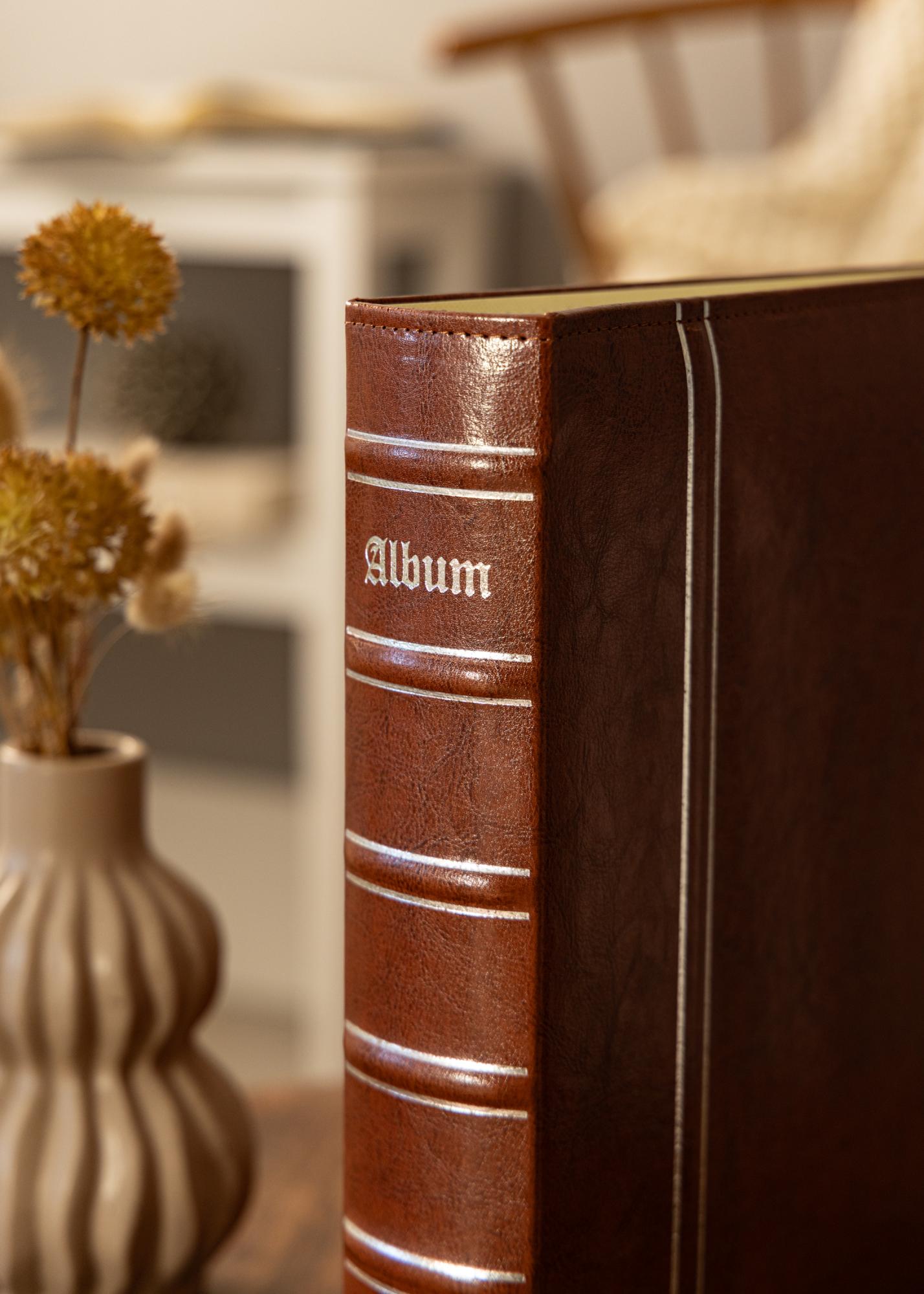 A Chesterfield Gigant gyűrűskönyv egy elegáns és tágas album klasszikus dizájnnal, amely tökéletes a legértékesebb emlékeid összegyűjtésére és megőrzésére. A barna borítón stílusos műbőr felület található dombornyomott részletekkel és ezüst színű vonalakkal, amelyek időtlen és kifinomult érzést keltenek.