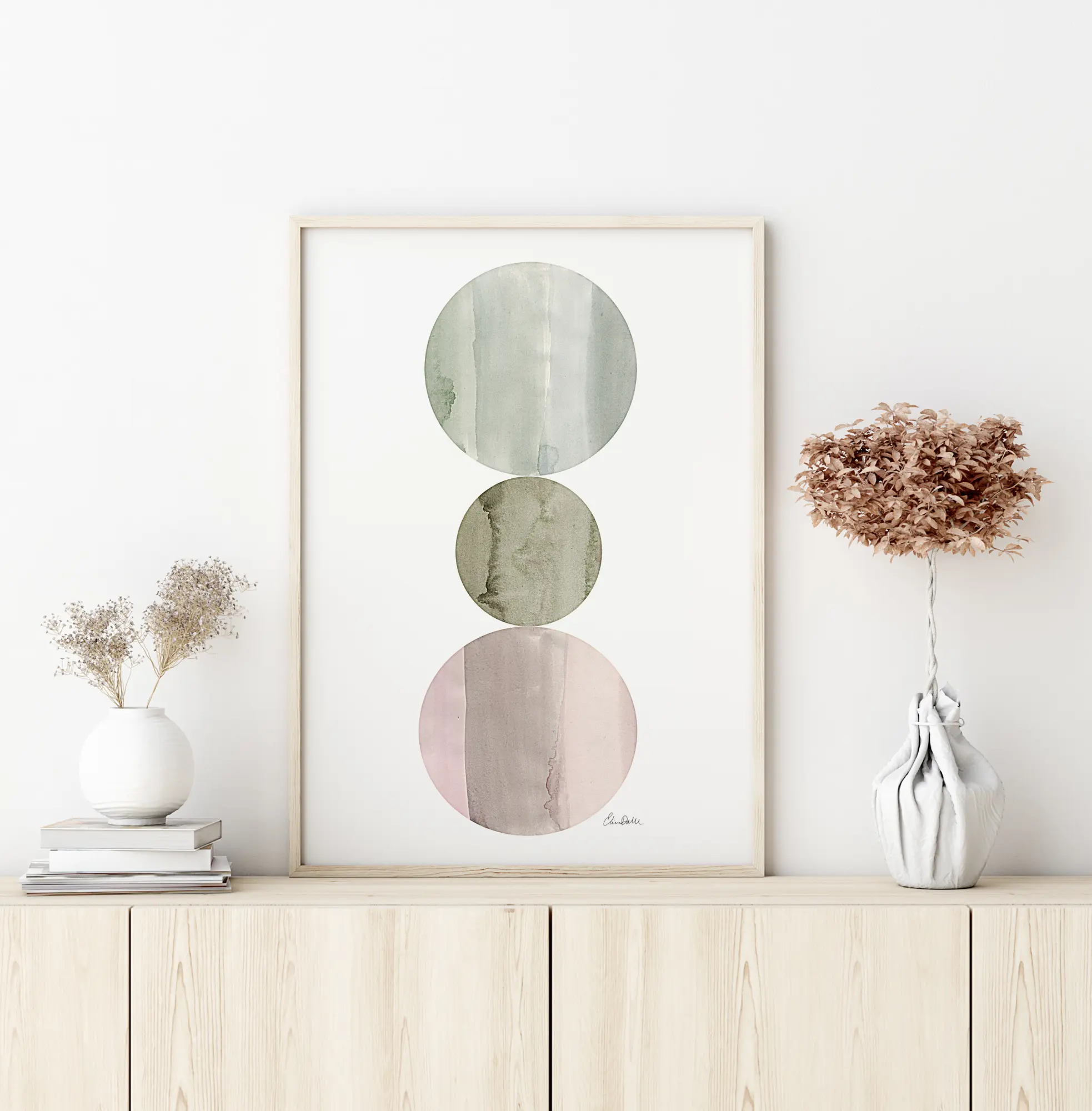 Egy grafikus akvarell gyönyörű zöld, barna és rózsaszín árnyalatokban, Elina Dahl művész által készítve. Egy poszter, amely izgalmas keverékét kínálja a művészeti formáknak, egyszerű fogalmazásban, amely ugyanolyan jól mutat a nappaliban vagy a hálószobában, mint a gyerekszobában.