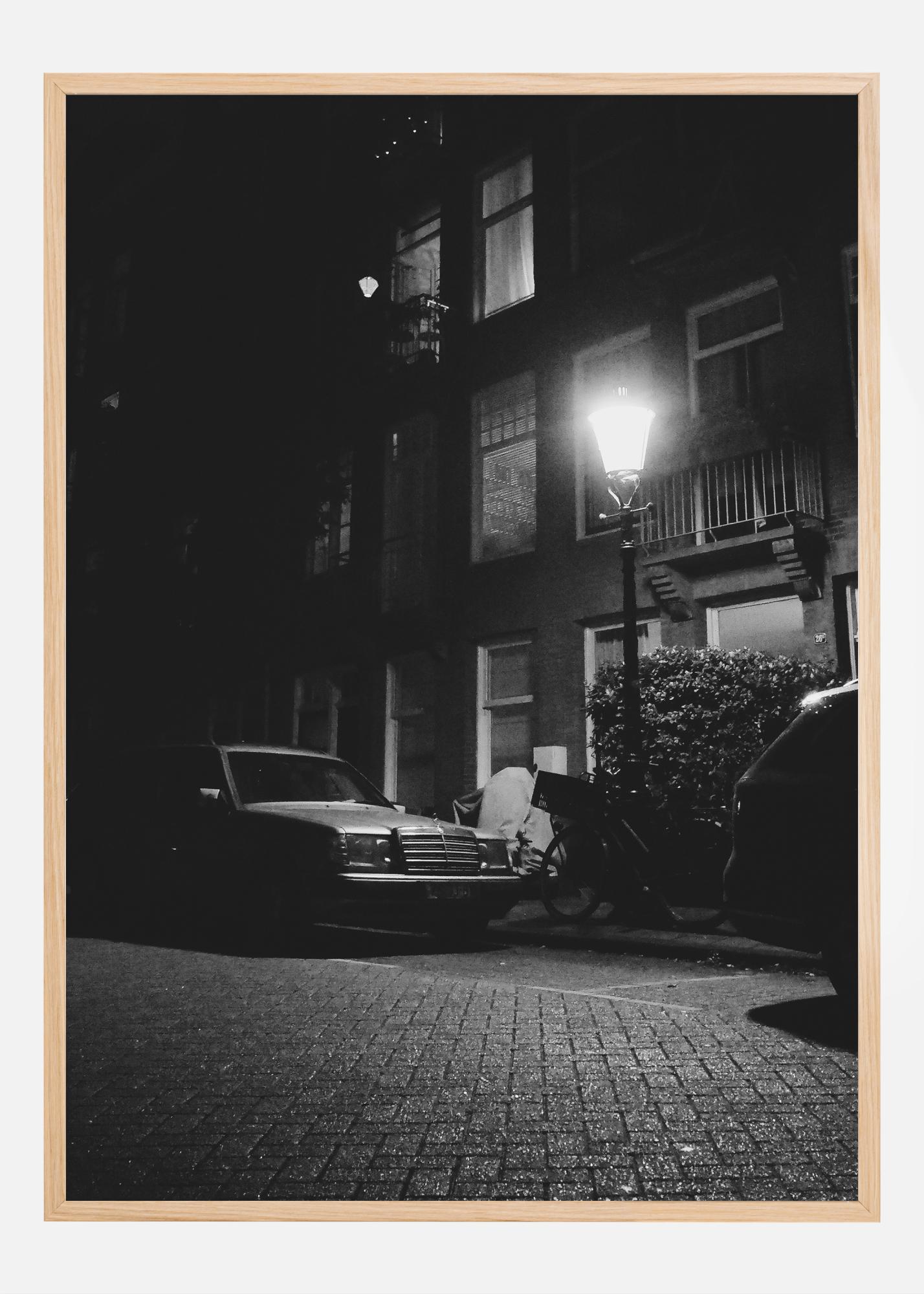 Ez a lebilincselő poszter egy pillantást enged a városi életre, amikor leszáll az éj. Egy magányos utcalámpa puha, meleg fényben fürdeti a járdát és a parkoló autókat. A motívumok egy monokróm palettán vannak megörökítve, amely erősíti a kontrasztokat és a részleteket ebben a csendes városképen. Ez a nyomat tökéletes arra, hogy nyugalmat és elmélyülést hozzon bármely helyiségbe, emlékeztetve a város egyébként lüktető tempójának csendes pillanataira.
