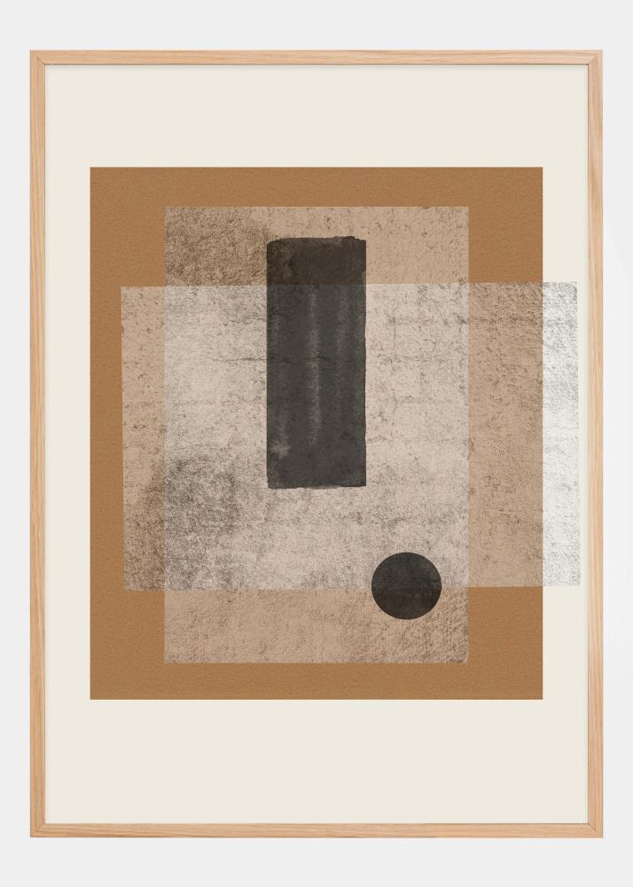 Ez a poszter az absztrakt művészet mesterének tisztelgése, akinek a munkái a formával és textúrával játszva teremtettek egyensúlyt és mélységet. A barna, fekete és szürke árnyalataiban átfedő téglalapok teremtik meg a tér és dimenzió érzetét, míg a magányos kör diszkrét, de erőteljes dinamikát ad a kompozíciónak.