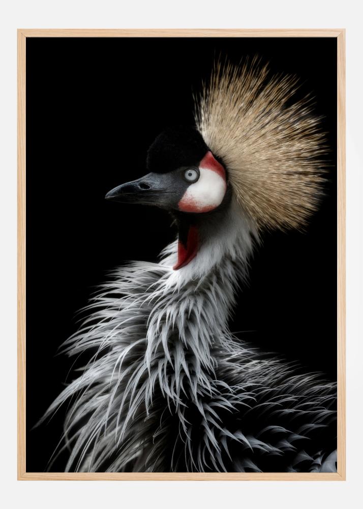 Egy fantasztikus vadon poszter daruval fekete háttér előtt. A fehér tollak és a bolyhos sárga taréj drámaian kiemelkednek és királyi hatást keltenek. A piros és fehér minták a madár szeméhez vonzzák a tekintetet. Csodáld meg, milyen fenséges a természet ezzel a lenyűgöző madárportréval.