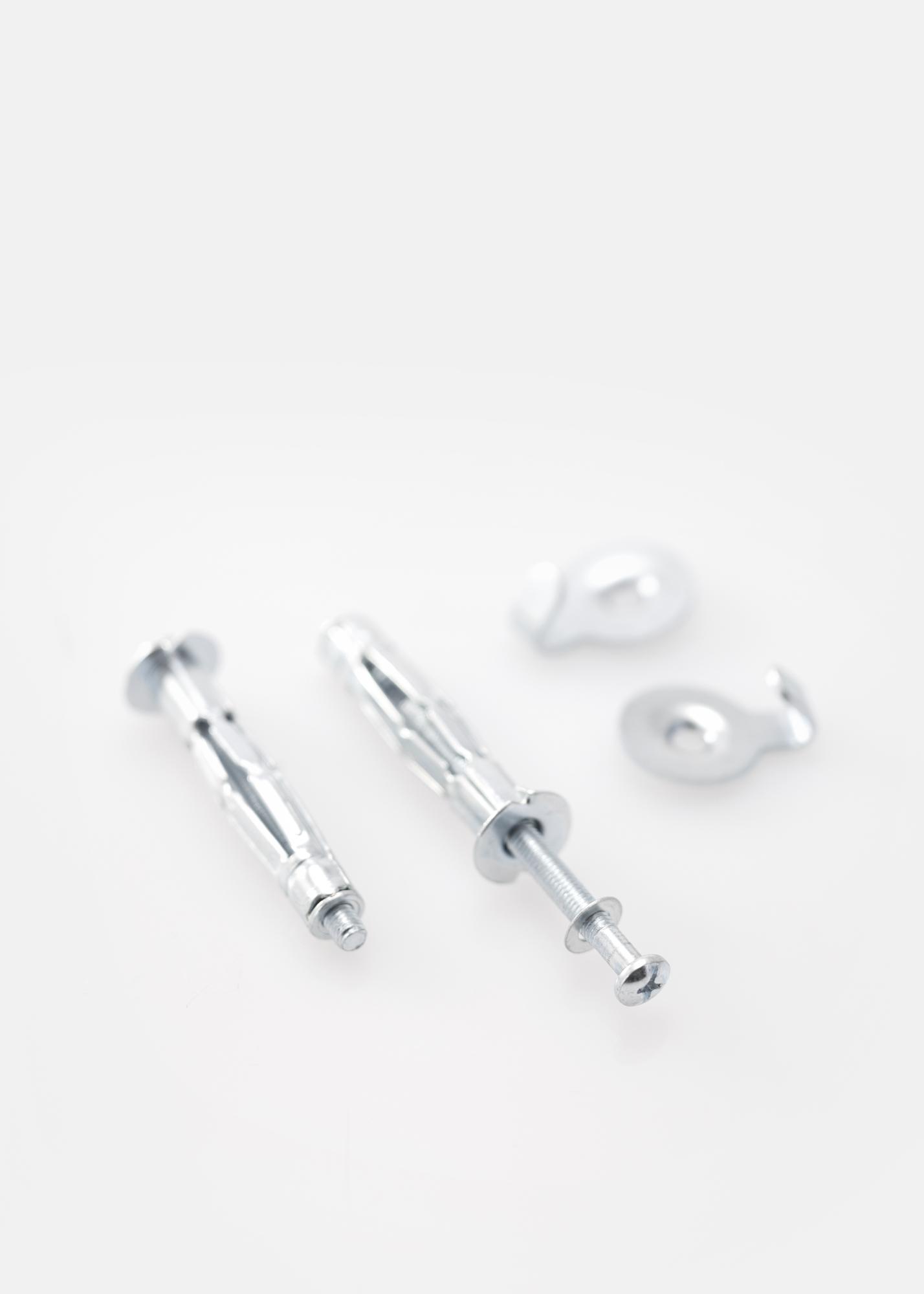 2 darab lemezdugó és M5 csavarok 13 mm-es gipszkartonhoz. A lemezdugó vájata 8 mm-es csavarmérethez illeszkedik.