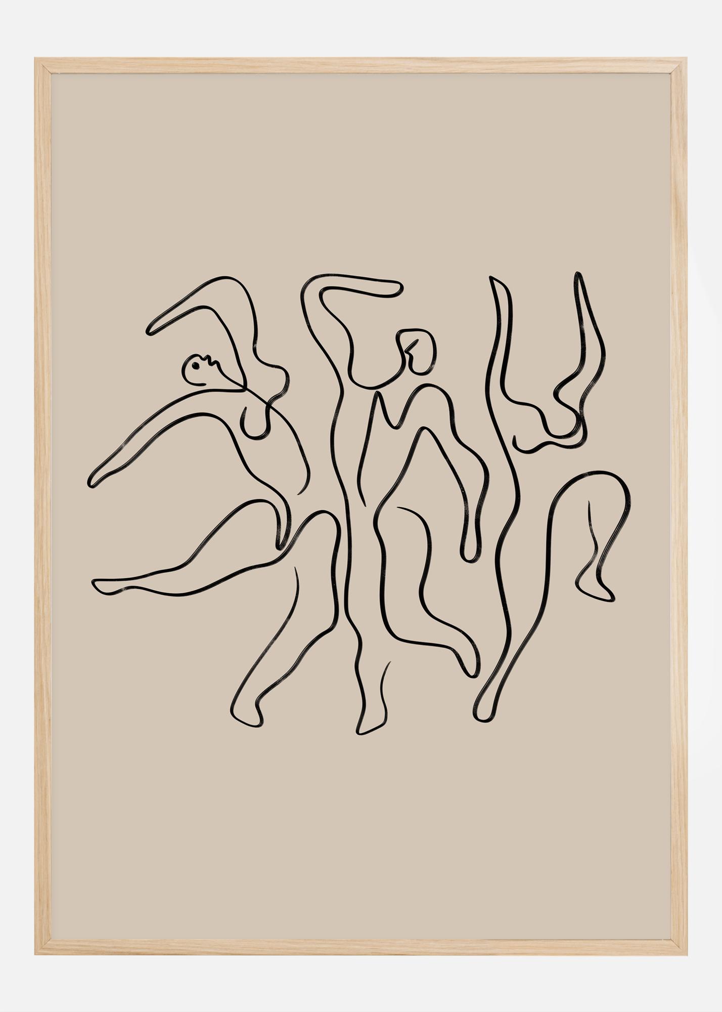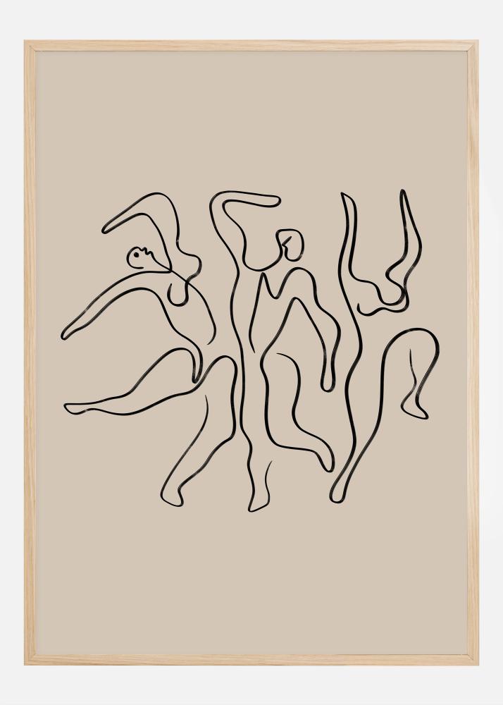 Ez a művészi poszter egy sor absztrakt alakot mutat be, amelyek áramló vonalaikkal a mozgás és a tánc érzését keltik. Az egyszerű, de kifejező illusztráció fekete színnel a nyugodt bézs háttér előtt minimalista, de élénk kifejezést nyújt. Ez a motívumtípus tökéletes azok számára, akik értékelik a finom, de erőteljes műalkotásokat, amelyek inspirálnak a mozgásra és a szabadságra.