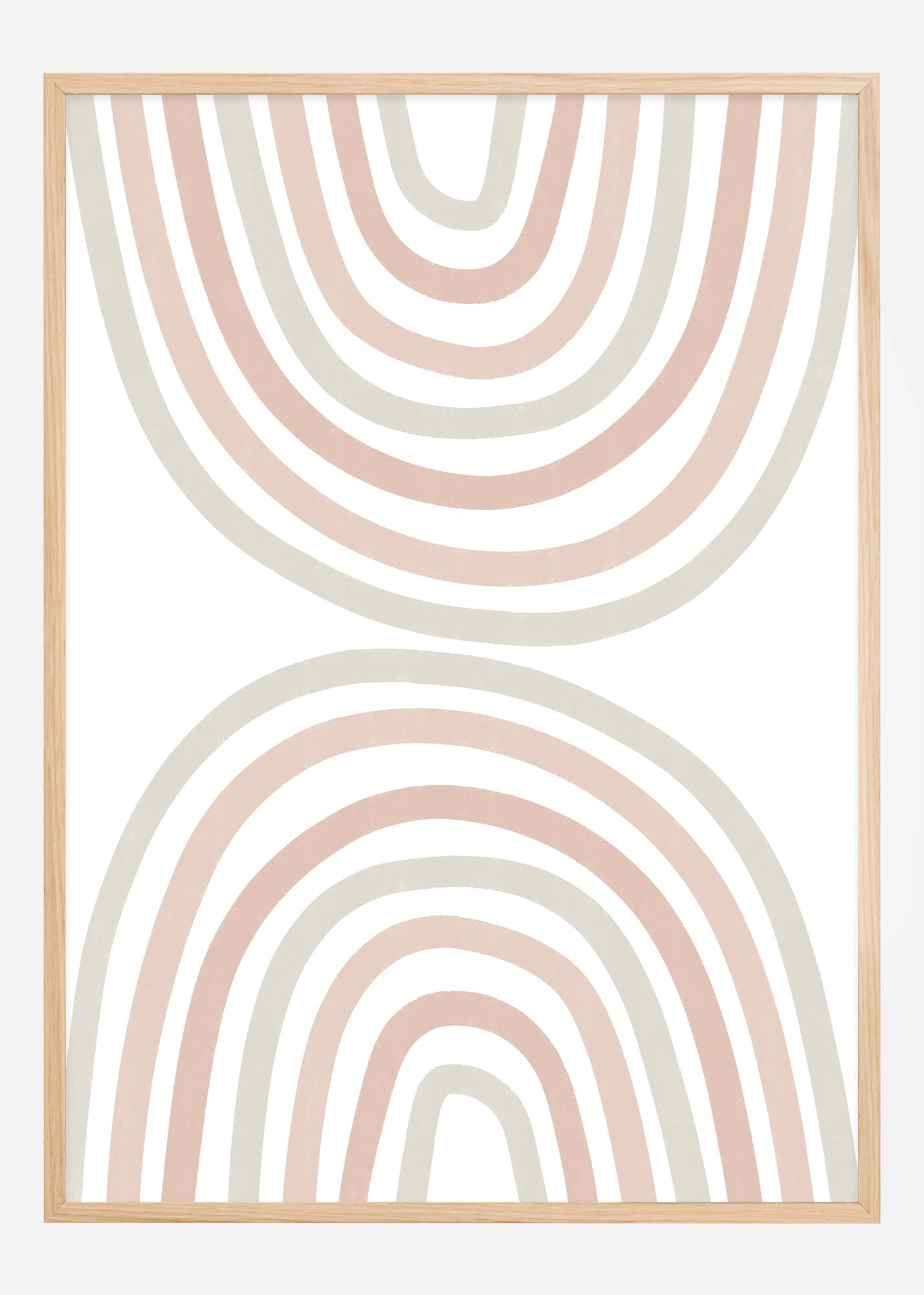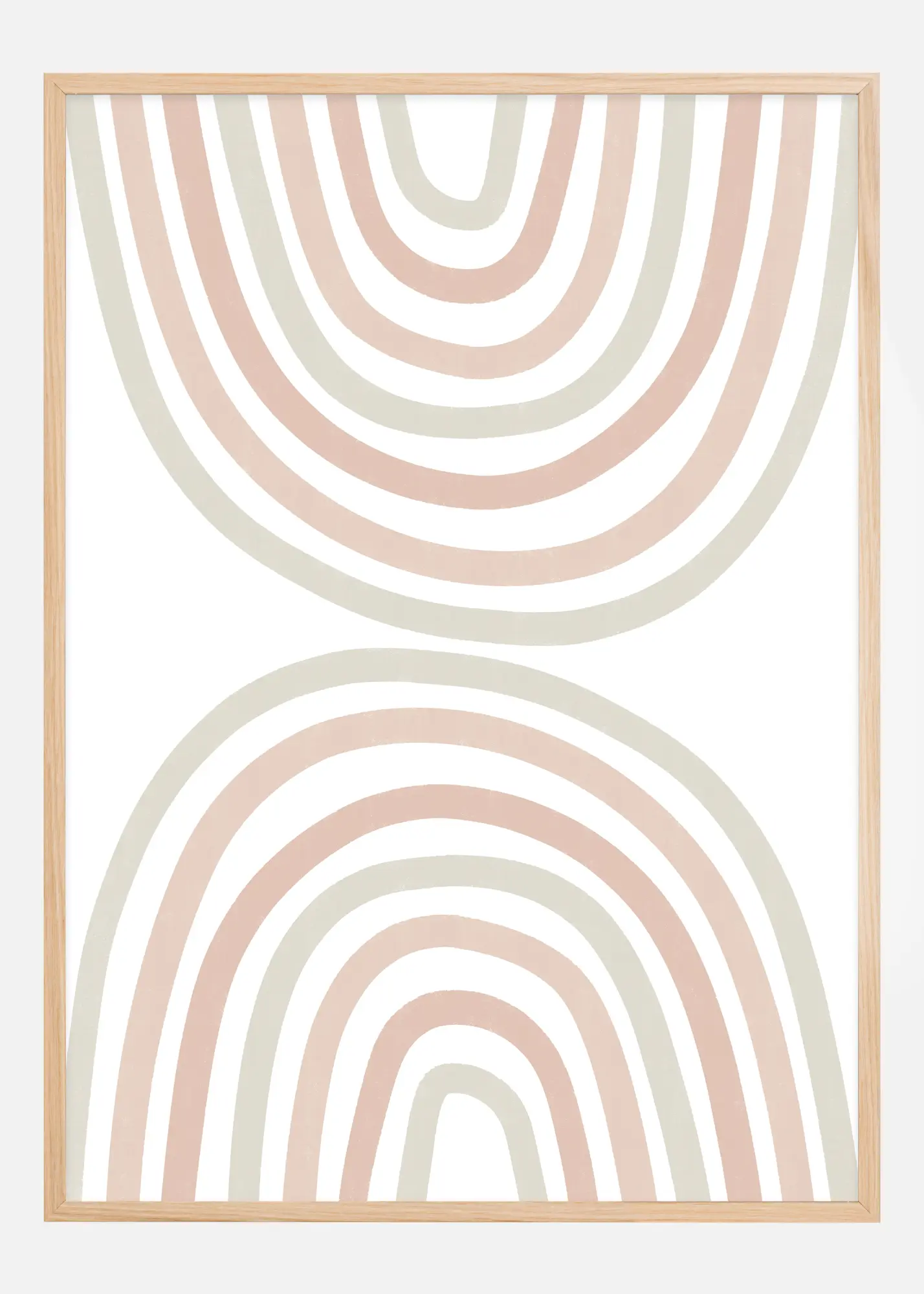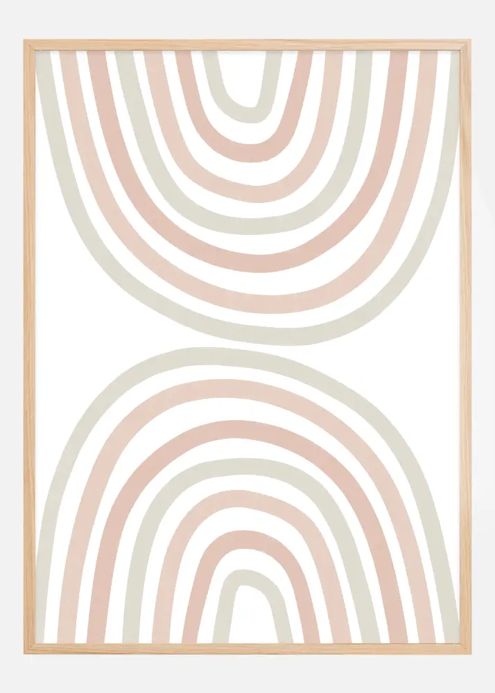 Ez a modern és minimalista poszter, amely a "Double Rainbow" címet viseli, egymást metsző ívek sorozatát mutatja be, amelyek egy dupla szivárványt alkotnak nyugodt és lazító színsémával. A kék, bézs és terrakotta puha tónusai tökéletesen kiegyensúlyozottak, hogy harmóniát és nyugalmat teremtsenek a teredben. A tiszta vonalak és az egyszerű design miatt ez a nyomat stílusos kiegészítője bármely modern lakberendezési stílusnak.
