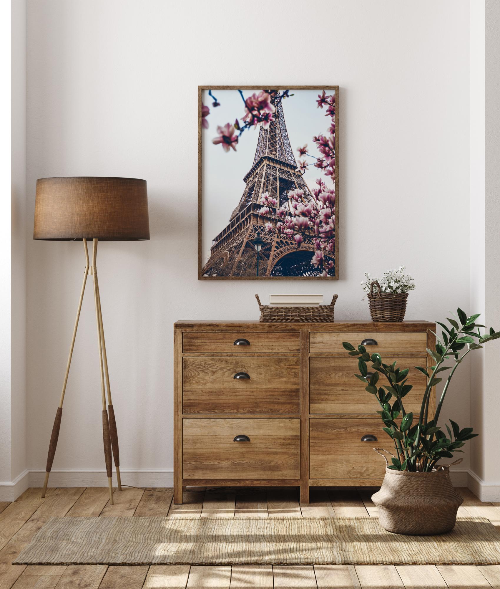 Egy nyugtató művészfotó az Eiffel-toronyról, ahol az előtérben lévő gyönyörű magnóliák varázslatosan csillogó fényt és kellemes mélységet adnak a képhez. Egy romantikus poszter, amely könnyen kombinálható más kedvencekkel.