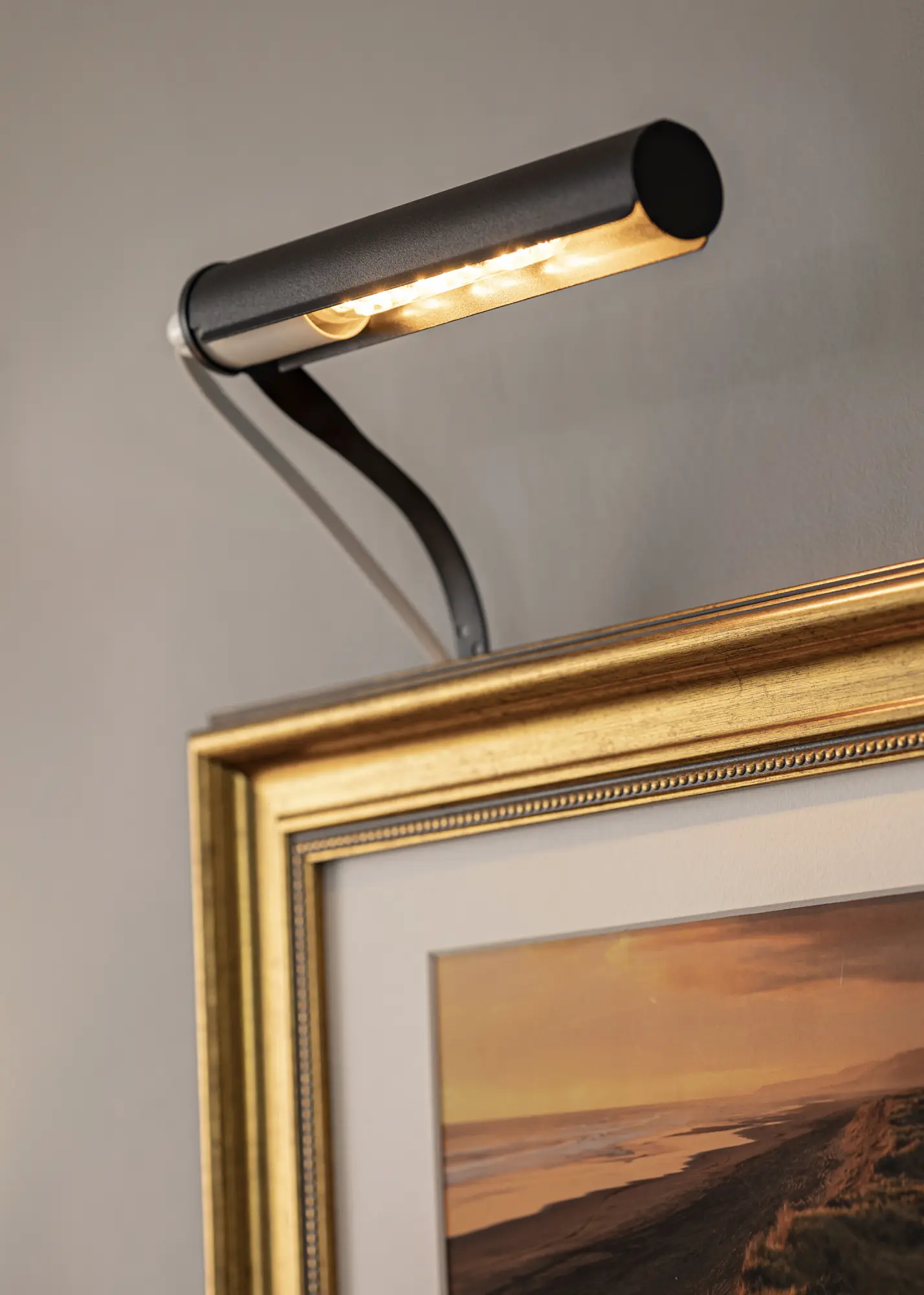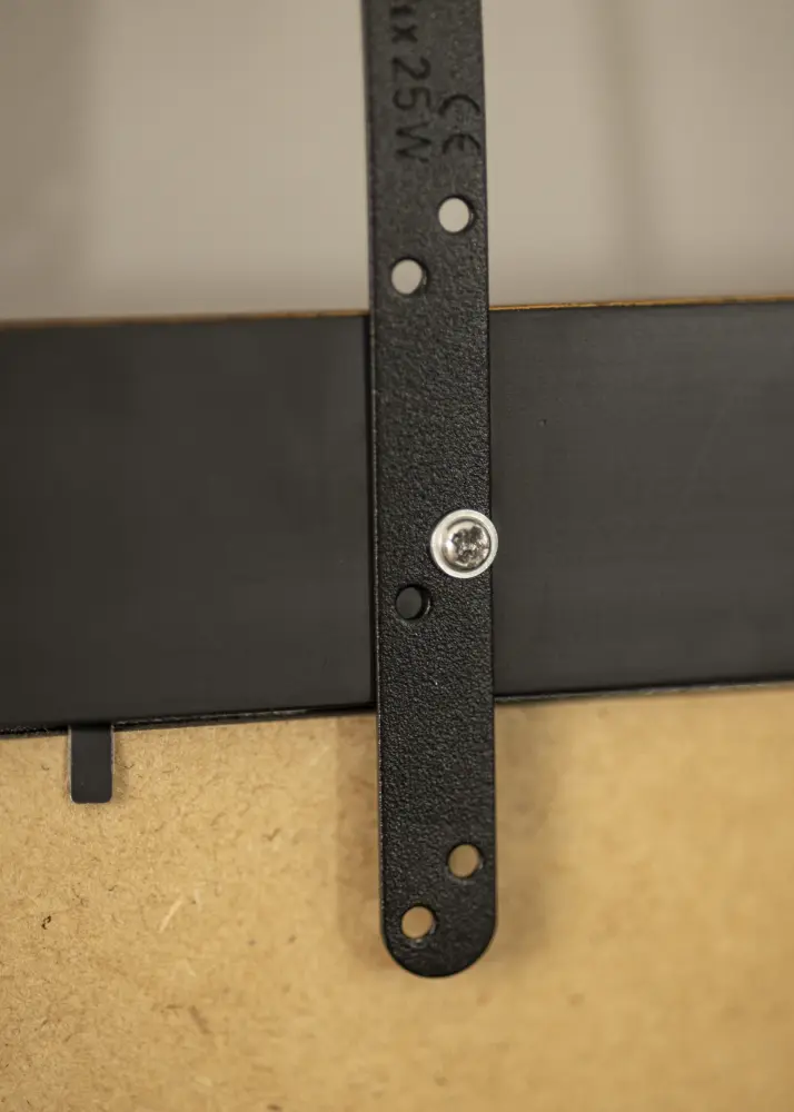 Általában a képmegvilágítást a keret hátuljára rögzíti, ennek hátránya, hogy fa keretet (néhány kompozit keret is megfelelő) kell használni, amely széles profillal rendelkezik ahhoz, hogy a keretet meg lehessen csavarozni. A mi fali konzolunkkal nem kell emiatt aggódnia, hanem egyszerűen szerelje fel a képmegvilágítást közvetlenül a kép mögötti falra.