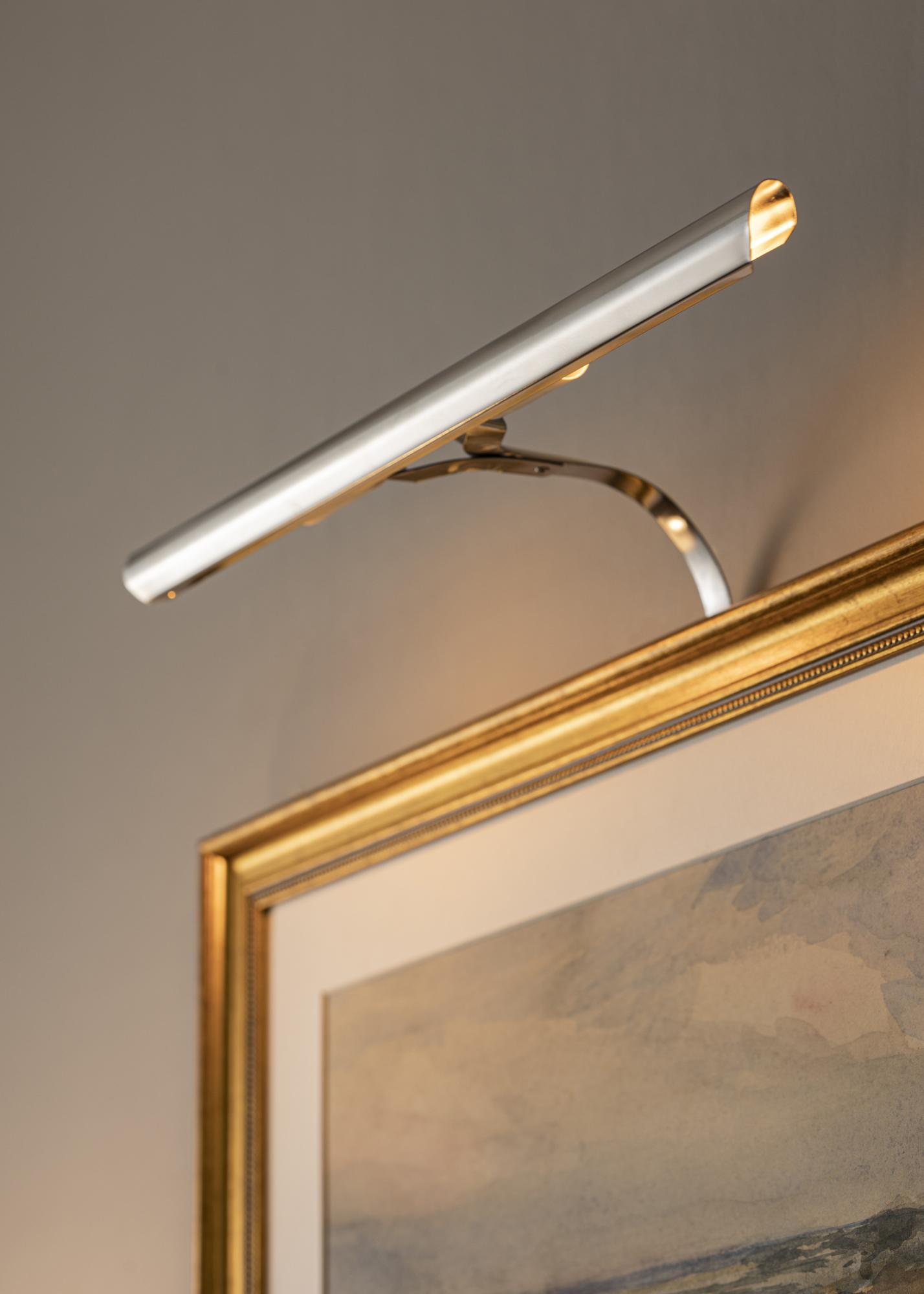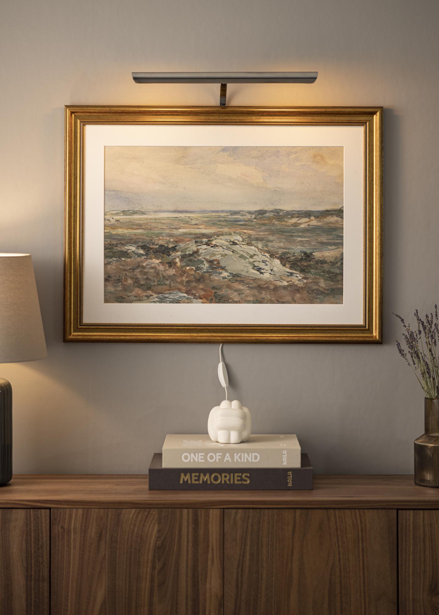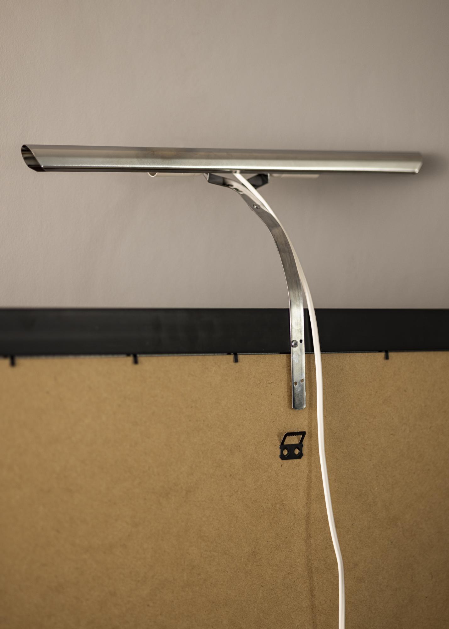 Általában a képmegvilágítást a keret hátuljára erősíted fel, ennek hátránya, hogy fa keret szükséges (bizonyos kompozit keretek is megfelelőek) amelynek széles profilja van ahhoz, hogy a keretbe tudj csavarozni. A mi fali tartónkkal nem kell ezen gondolkoznod, egyszerűen felszerelheted a képmegvilágítást közvetlenül a kép mögötti falra.