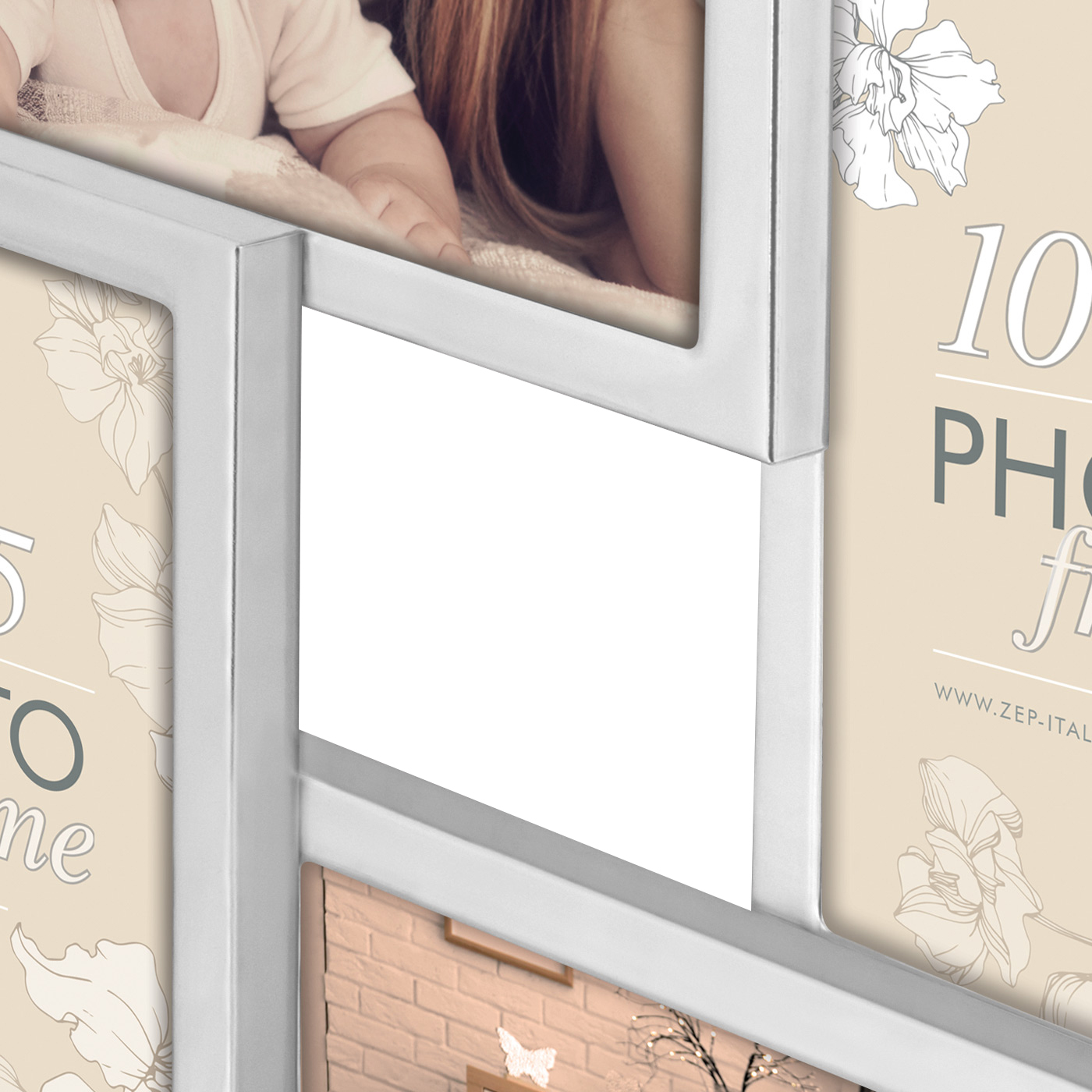 A keret a 10x15 cm-es méretű képekhez van tervezve, ami gyakori méret a fényképeknél. A 25x25 cm-es méretével kiválóan illeszkedik falakra és polcokra egyaránt, az ezüst színű kidolgozása pedig egy modern hatást kölcsönöz otthonának.