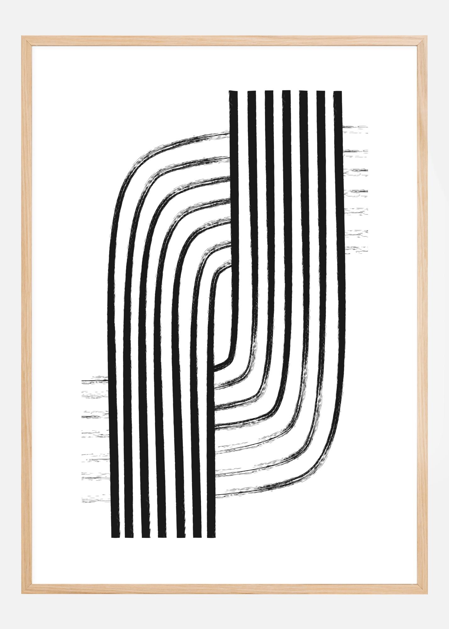 Egy egyszerű poszter fekete vonalakkal, amelyek mintát alkotnak. A kép hét fekete vonalból áll, amelyek egyenesen felfelé mennek, meghajlanak és elhalványulnak. Egy második vonalkészlet tükrözi az elsőt, de ellentétes irányba halad. Tegye otthonát galériává ezzel a kísérleti művel.