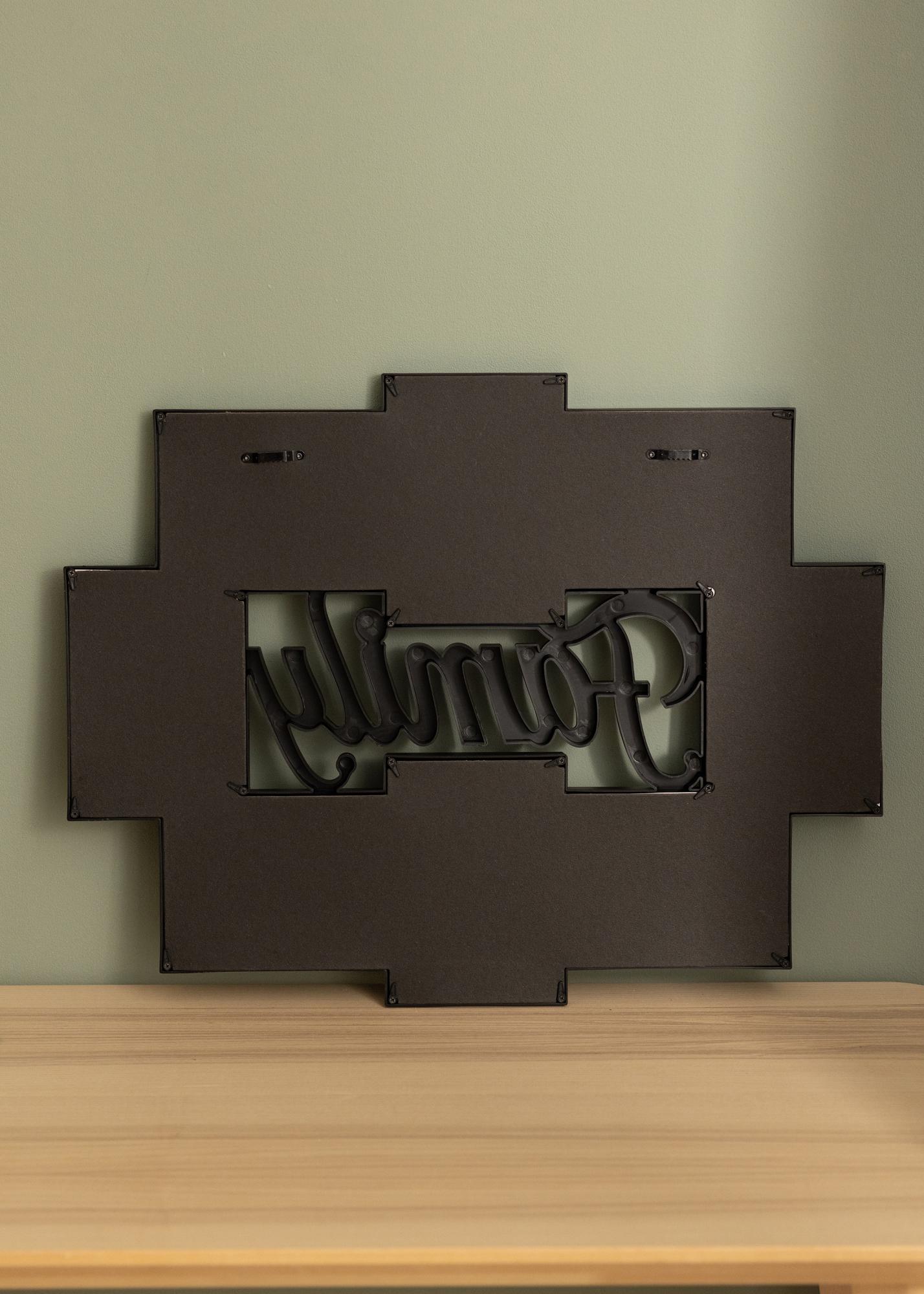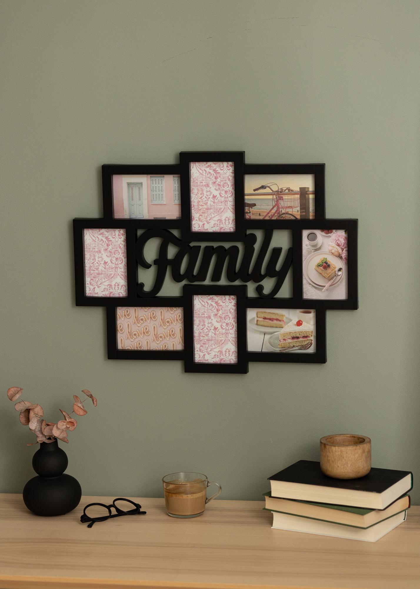 Akassz fel fotókat az egész családról egy stílusos kollázskeretre! Ez a fekete keret 8 darab 10x15 cm-es képet foglal magába, amelyek a ”Family” szöveg körül helyezkednek el, amely kivésve található a keret közepén. Van hely a képeknek álló és fekvő formátumban is, így rugalmasabb lehetsz a motívumok kiválasztásakor, amelyeket a keretbe helyezel. Ahhoz, hogy képeidet a kollázskeretre helyezd, lazítsd meg a keret hátoldalát mozgatható kapcsokkal, majd egyszerűen helyezd be a képeidet, ahol szeretnéd.