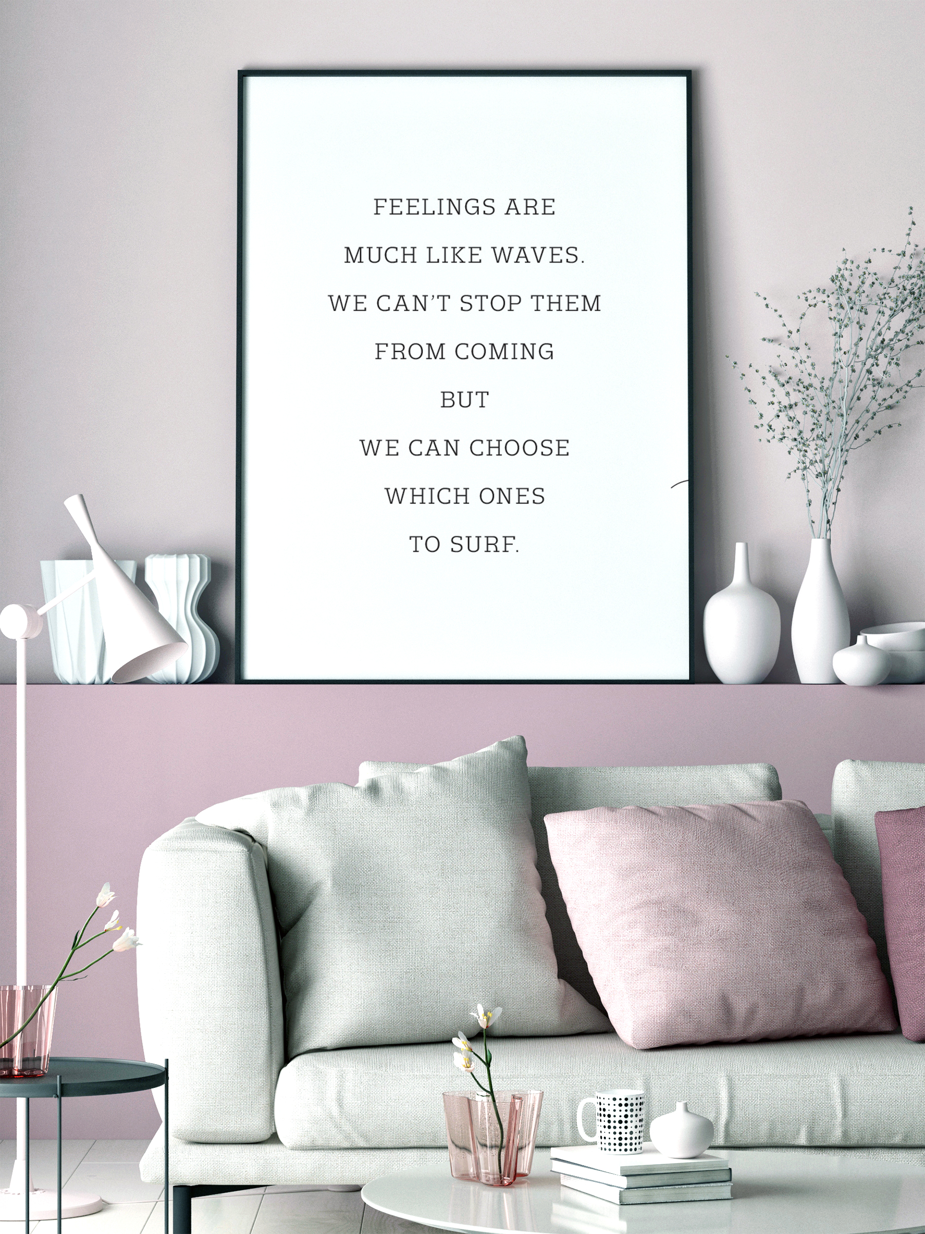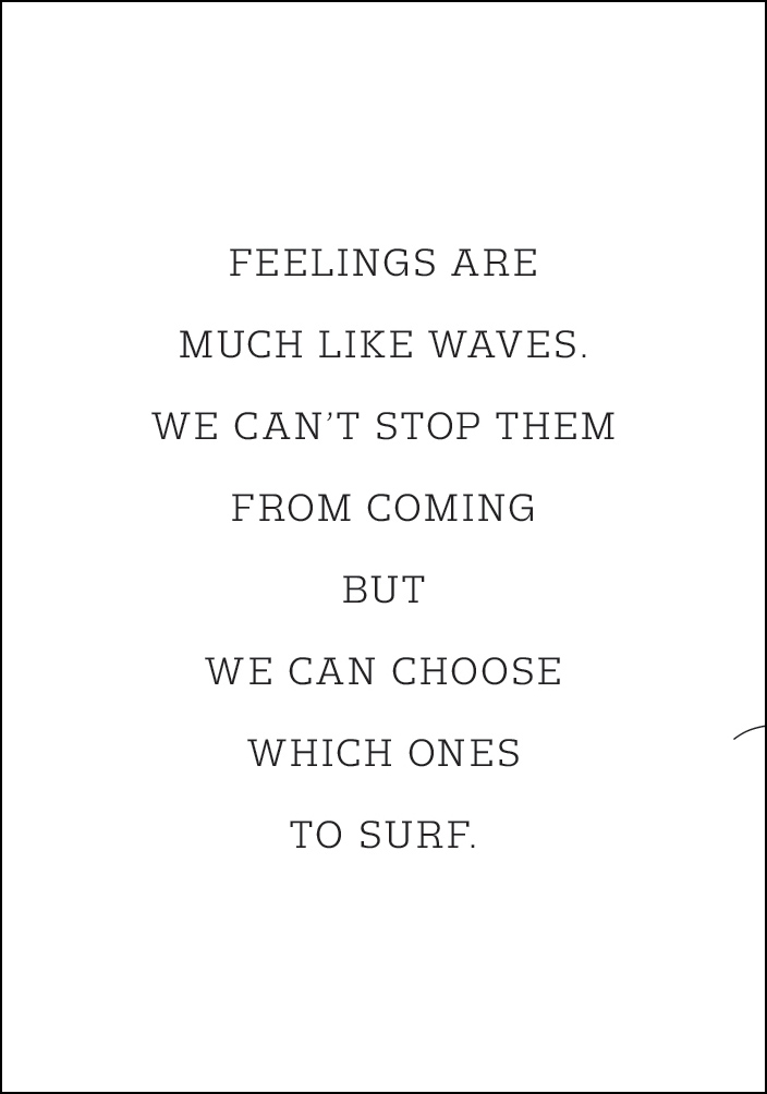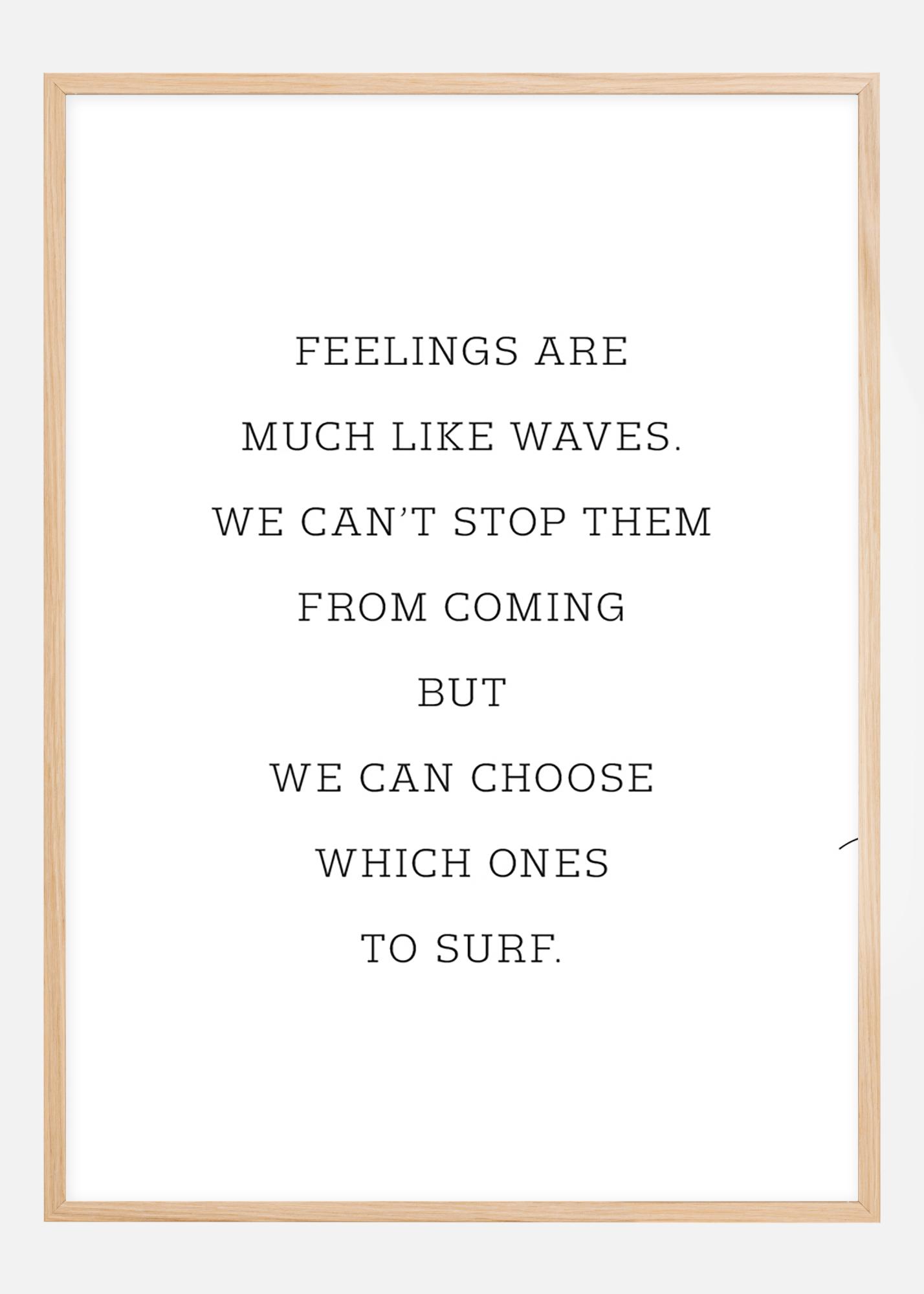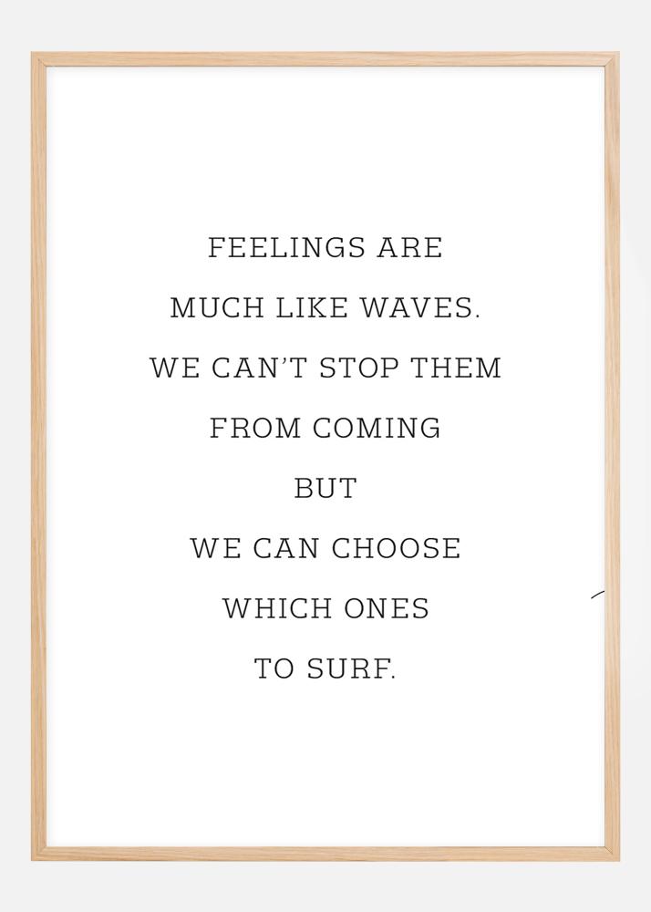 Egy motivációs poszter, amely minden nap segít továbblépni. Az érzések olyanok, mint a hullámok. Nem tudjuk megakadályozni őket abban, hogy jöjjenek, de választhatunk, melyikeket szörföljük meg. Indítsa el napját ezzel az erős idézettel, amely egyszerű betűtípusban egy sima fehér alapon található.