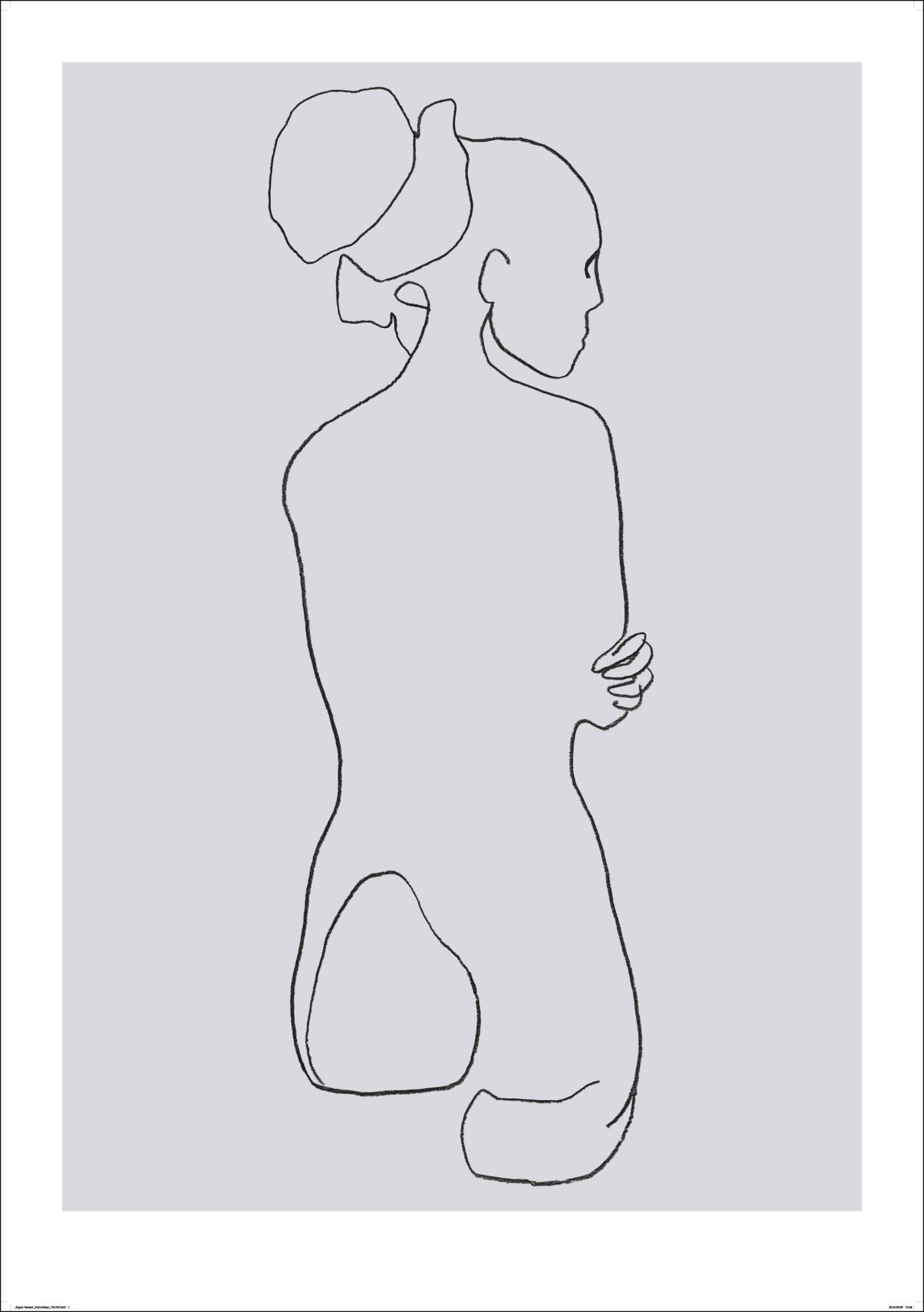 Karcsú vonalvezetés, amely egy nő csupasz hátát és feltűzött haját ábrázolja, Jörgen Hansson művész alkotása a Jörgen Hansson Art-nál. Egy elegáns poszter, amelyet előnyösen kombinálhatunk Jörgen Hansson Female Lines II és Female Lines III műveivel.