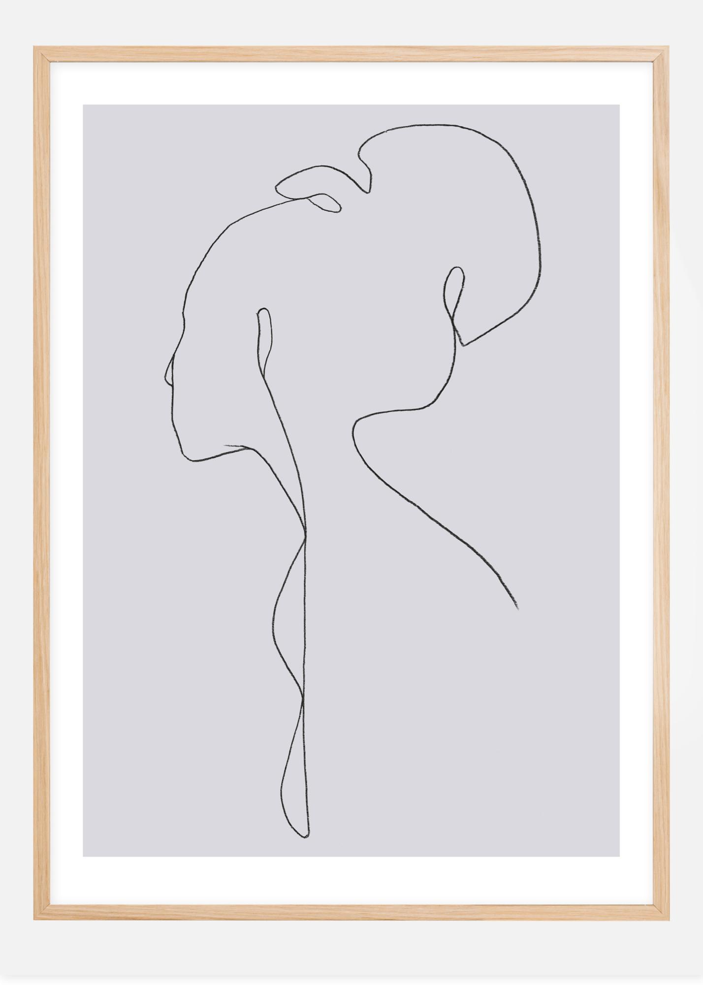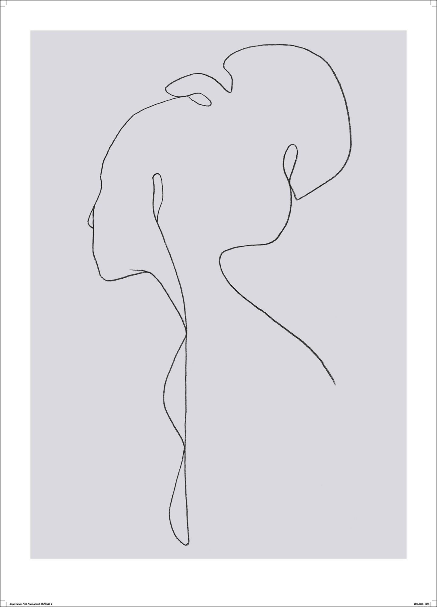 Finom fekete vonalakkal egy szürke alapon formálódik egy nő profilja. Tekintete elfordul a szemlélőtől, és haját kontyban viseli a fején. Egy gyönyörű és elegáns poszter, melyet Jörgen Hansson Art készített.