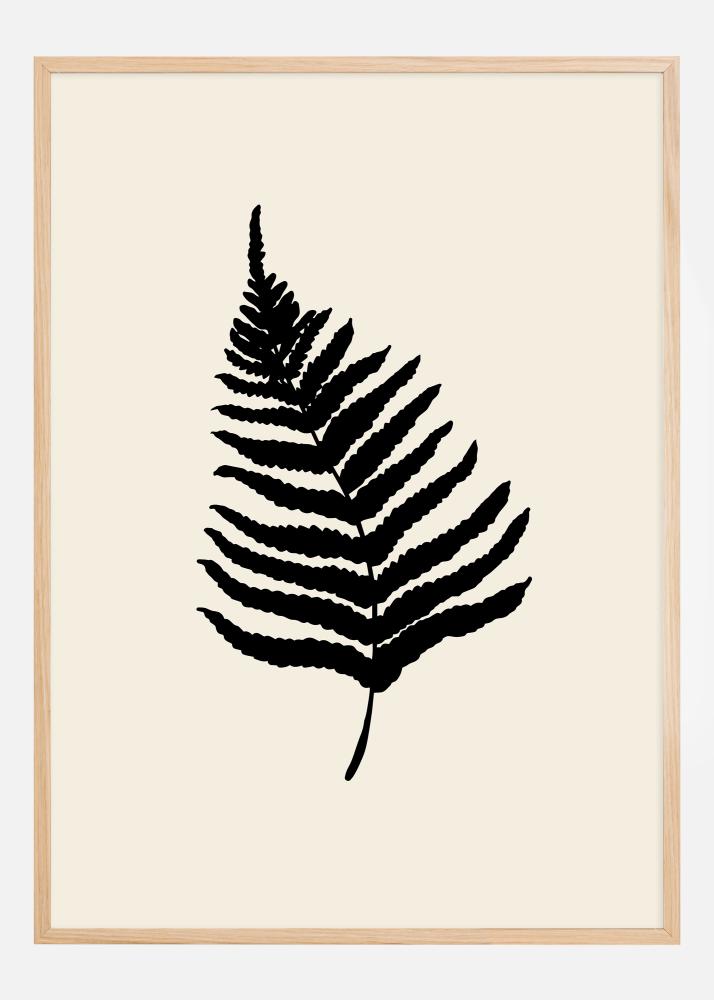 Ez a minimalista és stílusos poszter egy páfránylevél sziluettjét mutatja egy világos háttér előtt, ami erőteljes grafikai hatást kelt. Az egyszerű, de kifejező minta fekete színben szépen kontrasztál a krém színű háttérrel, és organikus érzést ad a képnek. Ez a nyomat az egyszerű természet szépségének és annak örök bájának tisztelgése.