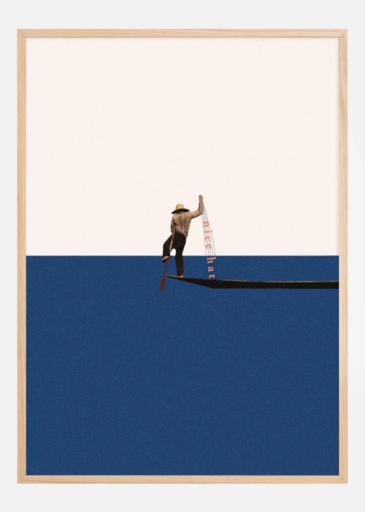 Ebben a kreatív és metaforikus plakátban megragad a türelem és várakozás pillanatképe. Itt egy férfi látható klasszikus halászkalapban és kabátban, aki szilárdan áll egy barna csónakon, a hátteret alkotó tiszta kék tó éles kontrasztjában. A csónak széléről kihajolva elkötelezetten űzi a komoly művészetet, a "bókok halászatát" egy élénk piros-fehér horgászbottal. Ez a cselekvés humoros csavart visz a hagyományos horgásztémába és korszerű értelmezést nyújt a megbecsülés keresésének és adásának művészetében.