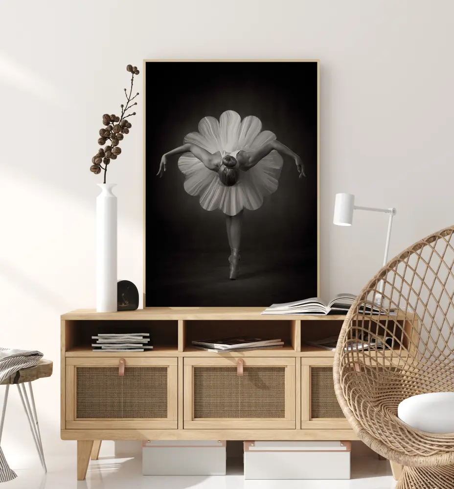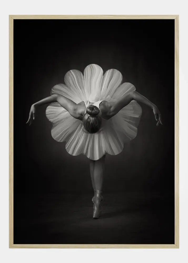 Elegáns poszter balettáncosnővel, virágszerű szoknyában. Ez a gyönyörű poszter absztrakt jellege miatt beszélgetést fog kiváltani és ámulat érzését nyújtja otthonának.