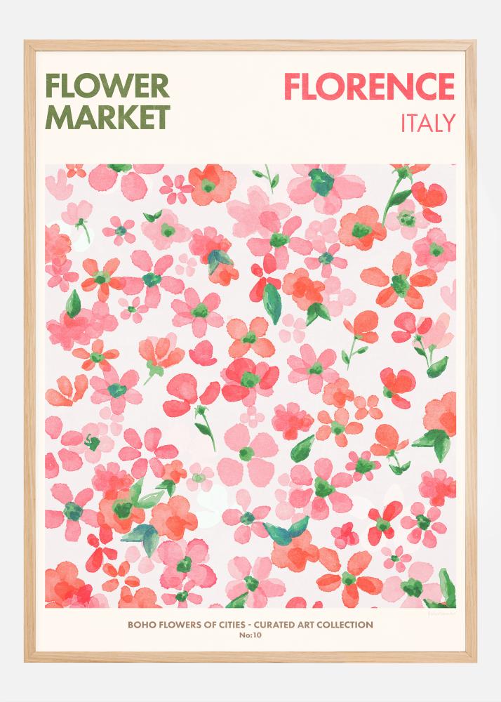 A színpaletta kiterjed a rózsaszín különböző árnyalataira, a világos pasztelltől a mélyebb korallszínekig, valamint a levelek zöld árnyalataira, vizuális élményt nyújtva ezzel a nyomattal. Ez a poszter nem pusztán Firenze flórájának művészi ábrázolása, hanem egy módja annak is, hogy az olasz bájt beemeljük a belső térbe. Akár a nappaliban, hálószobában vagy egy stúdióban helyezik el, ez a virágos alkotás ragyogni fog a helyiségben, és elhozza Firenze ellenállhatatlan esztétikájának egy darabját.