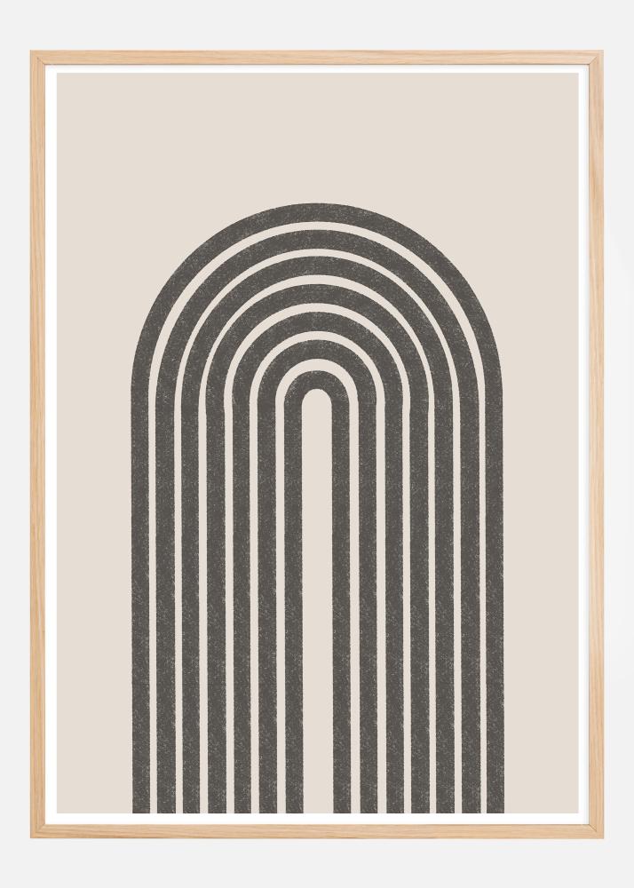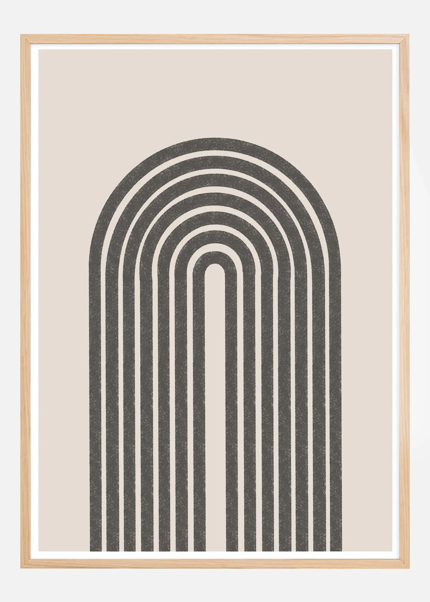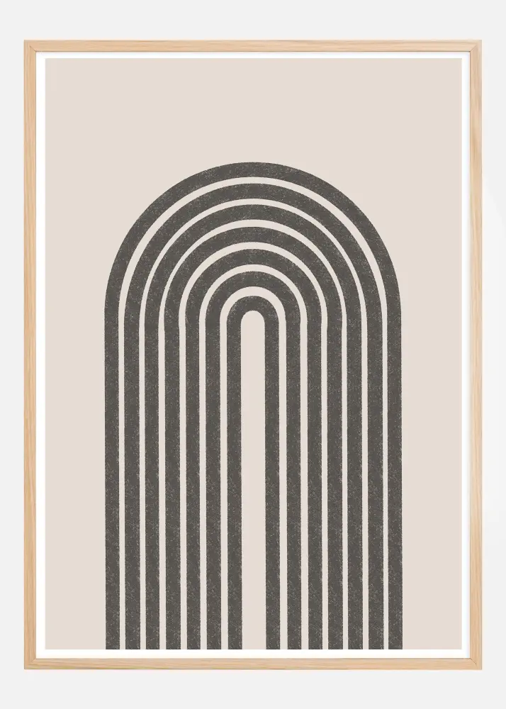 Ez a minimalista poszter a koncentrikus ívek harmonikus összetételét emeli ki egy lágyan geometrikus formában, amely nyugalmat és egyensúlyt sugároz. A sötét tónusú ismétlődő vonalak semleges háttérrel egy kifinomult és kortárs dizájnt alkotnak, amely tökéletes a modern belsőépítészet kedvelőjének. A színek gazdag árnyalatú kombinációja fekete és törtfehér, amely megkönnyíti ennek a nyomtatottnak az illeszkedését különböző belsőépítészeti stílusokhoz és színsémákhoz.