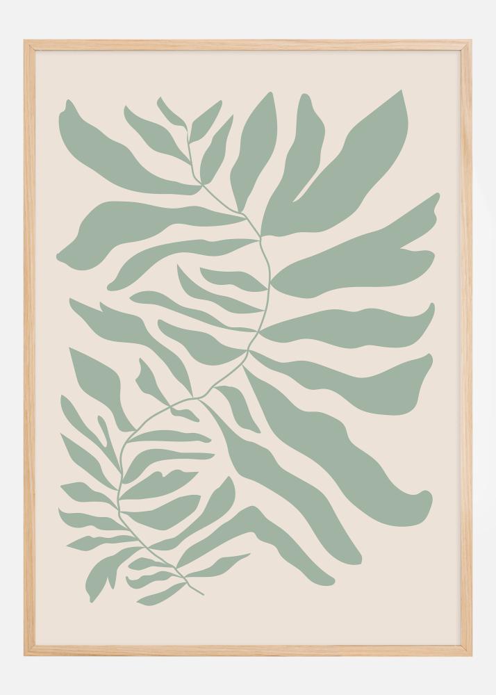 Friss és tiszta kialakításával ez a poszter zöld növényleveleket ábrázol megnyugtató bézs háttér előtt. Szerves vonalai és természetes formái a természet megnyugtató jelenlétét viszik be közvetlenül az otthonodba vagy munkahelyedre. A színpaletta különböző zöld árnyalatokat használ, a világosabb levelektől egészen a sötétebb kontúrokig, ami dinamikus, de harmonikus érzést kelt. Ez a nyomat a természet egyszerű szépségének hódol, és nyugalmat sugárzó elemet adhat bármely lakberendezési stílushoz.