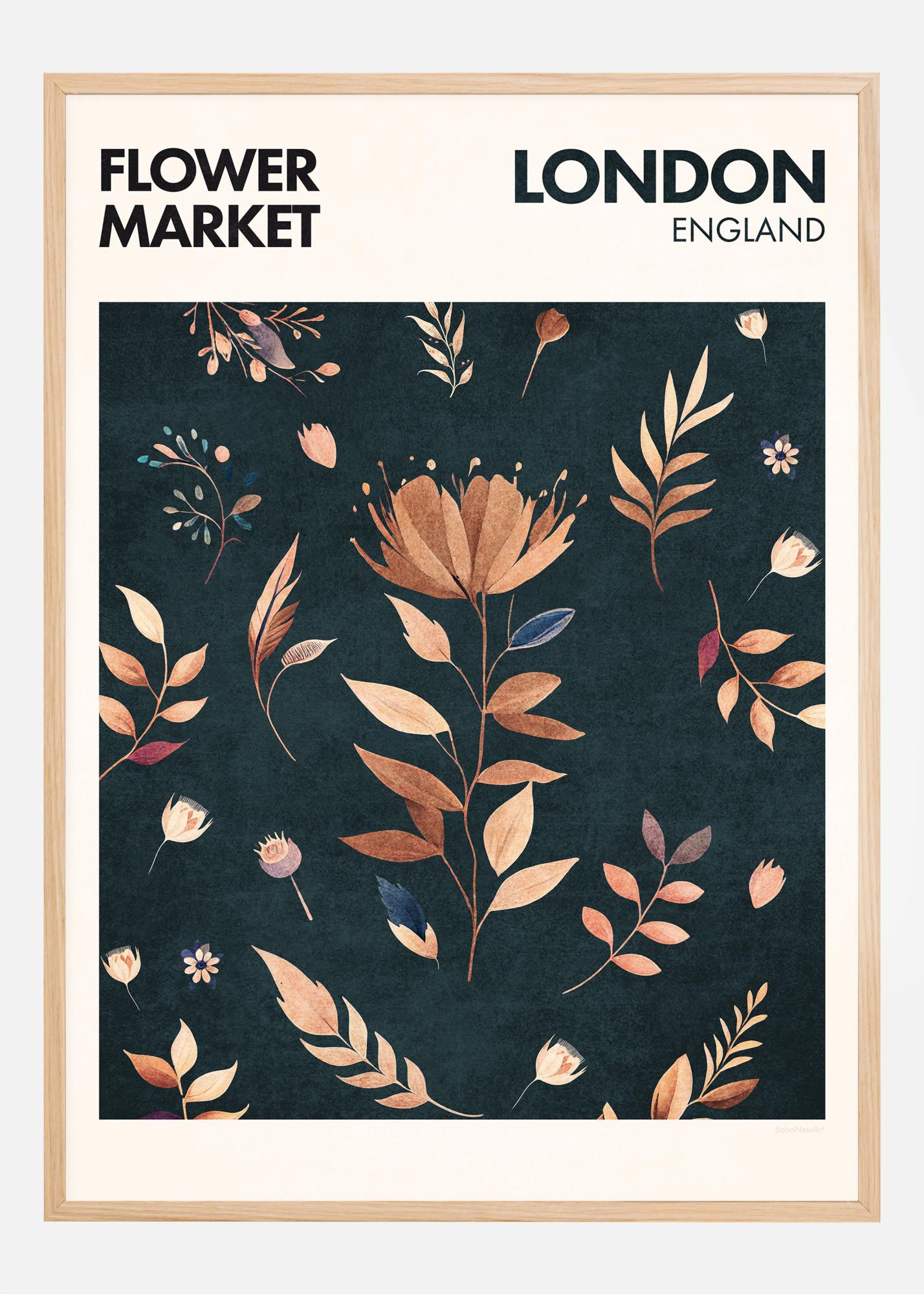 Ez a varázslatos poszter London híres virágpiacának eleganciáját ábrázolja. A növényvilág színes szimfóniája, amely Anglia szívében virágzik, bemutatva egy botanikai illusztrációval, amely virágok és levelek gyűjteményét ábrázolja. A design klasszikus brit bájt és a természet időtlen szépségét sugározza.