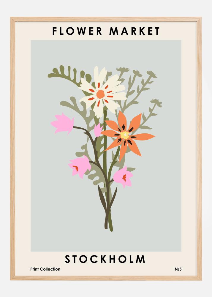 Ez a poszter Stockholm virágpiacát ábrázolja, friss és természetközeli dizájnnal, amely megragadja a város lüktető szépségét és zöldjét. Ebben a printben a fény és árnyék játéka harmonizál a virágok és a lombozat között, életre keltve a virágzó motívumokat fehér, rózsaszín és narancs árnyalataiban, egy enyhe kékesszürke háttér előtt. Ez tisztelgés a skandináv főváros természet iránti szeretete előtt, és képessége előtt, hogy a hagyományt a modern dizájnnal ötvözze.