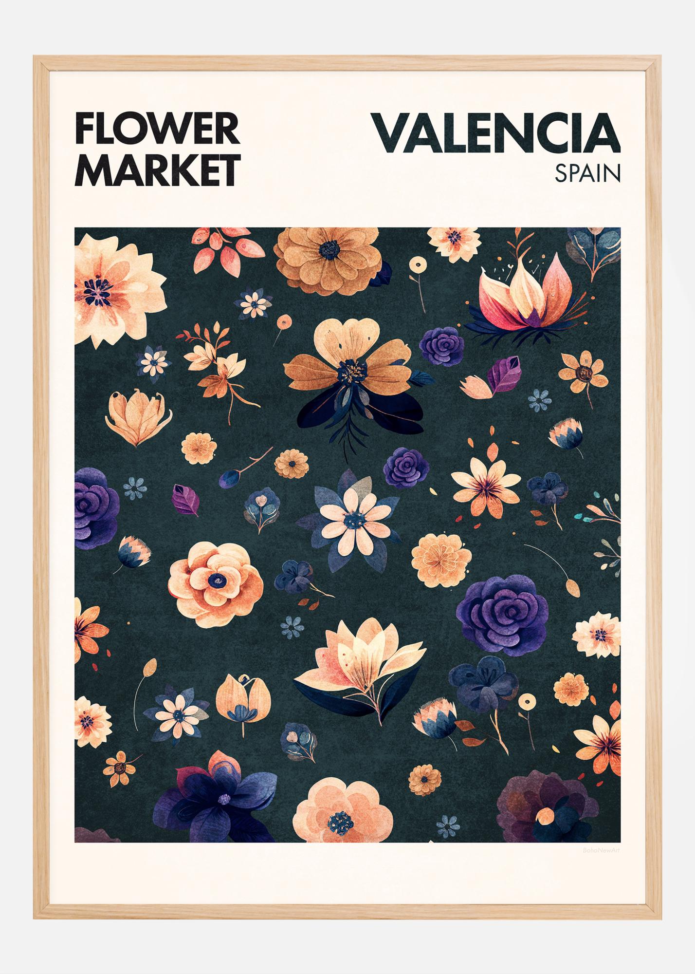 Ez a színes és élénk poszter a spanyolországi Valencia virágpiacának virágdíszét ábrázolja. A részletgazdag motívum tisztelgés a piac virágainak sokszínűsége előtt, ahol minden fajta és szín teljes pompájában látszik megörökítve. Az érzékeny pasztell árnyalatoktól a merész, telített színekig a dizájn egy buja oázis érzését kelti a város szívében.