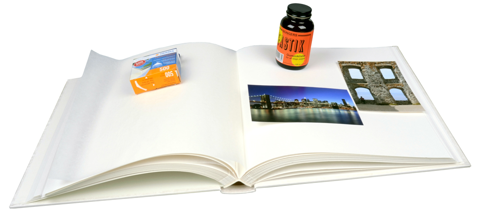 A képeket ragasztóval vagy fotósarkokkal lehet az albumban rögzíteni.